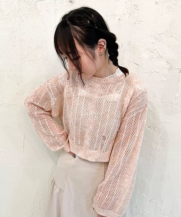 axes femme 2WAY 破損感的馬海毛針織衫 [TP365]