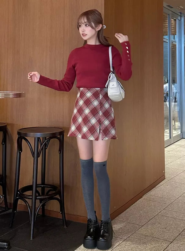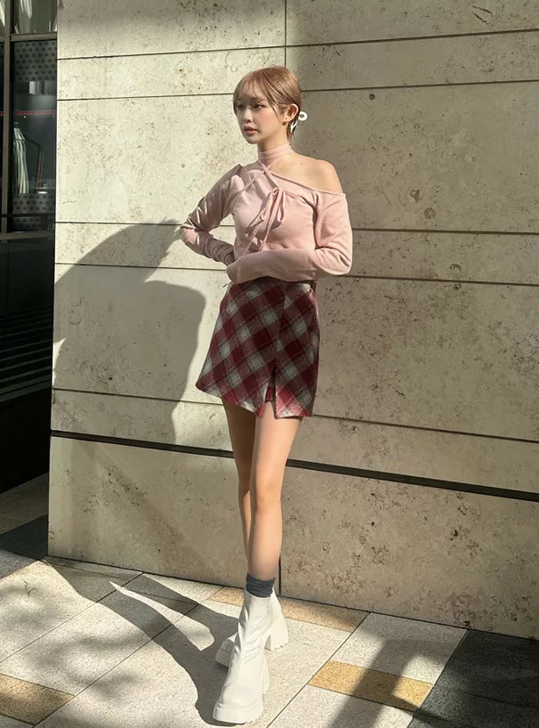 GRL 斜紋格紋絨布短裙 [BT0139]