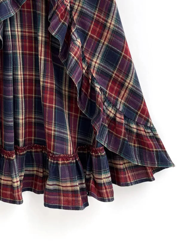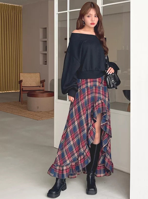 GRL 格子前開叉Ruffle邊魚尾裙 [BT0141]