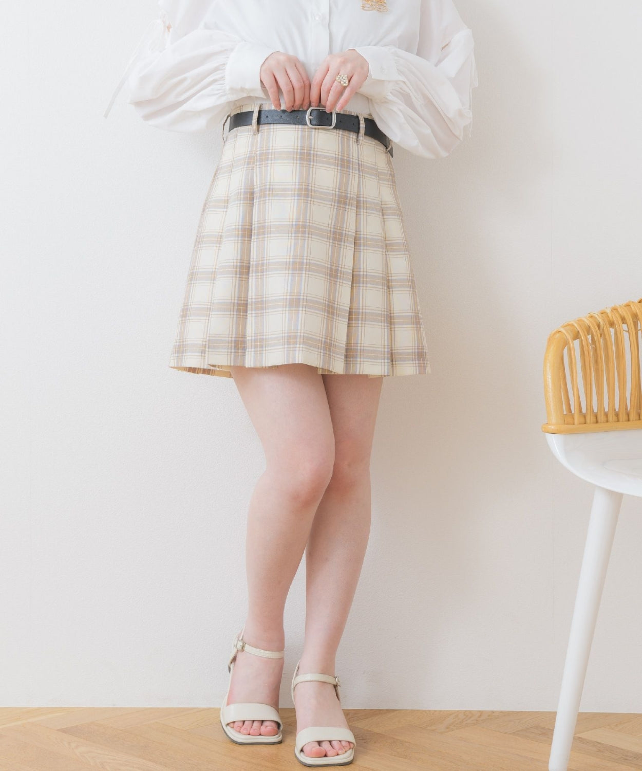 ems excite 附腰帶格仔百褶裙 [BT270]