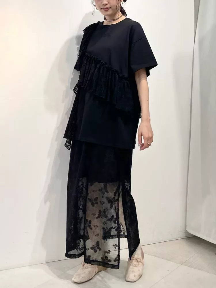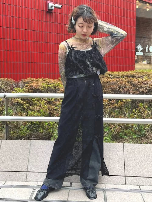 這是一種雙向設計,您可以將蕾絲裙與牛仔褲等搭配在一起