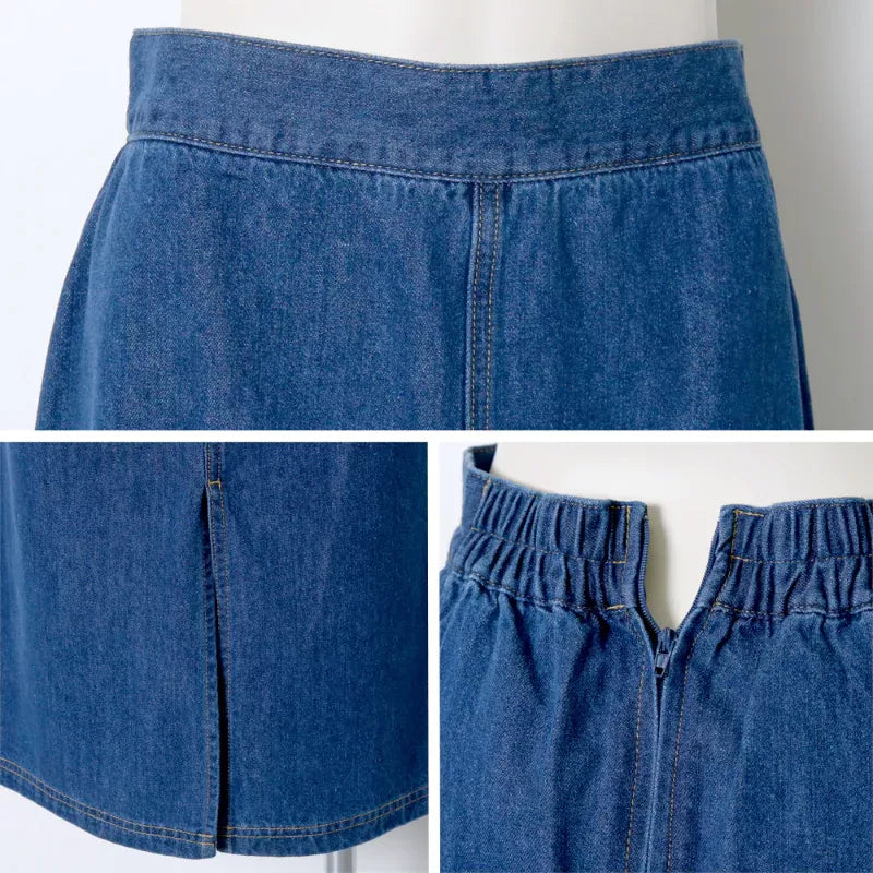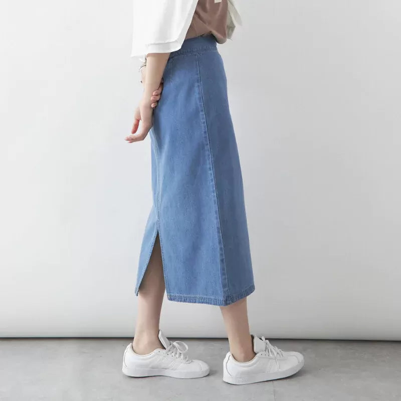 後開叉休閒牛仔長裙 2色入 [BT53]