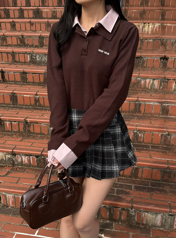GRL 學院風翻領針織上衣 3色 [TP0223]