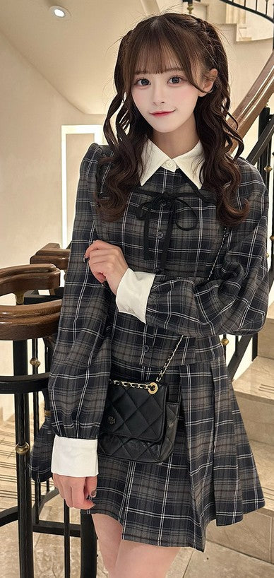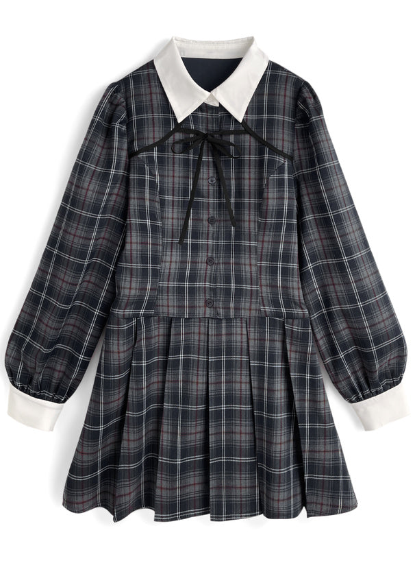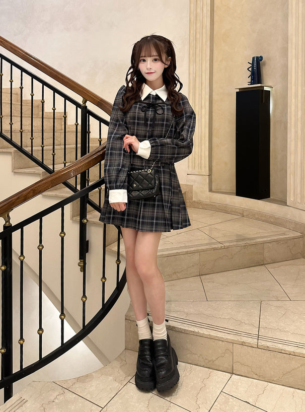 GRL 蝴蝶結格紋連身裙 [OP0217]