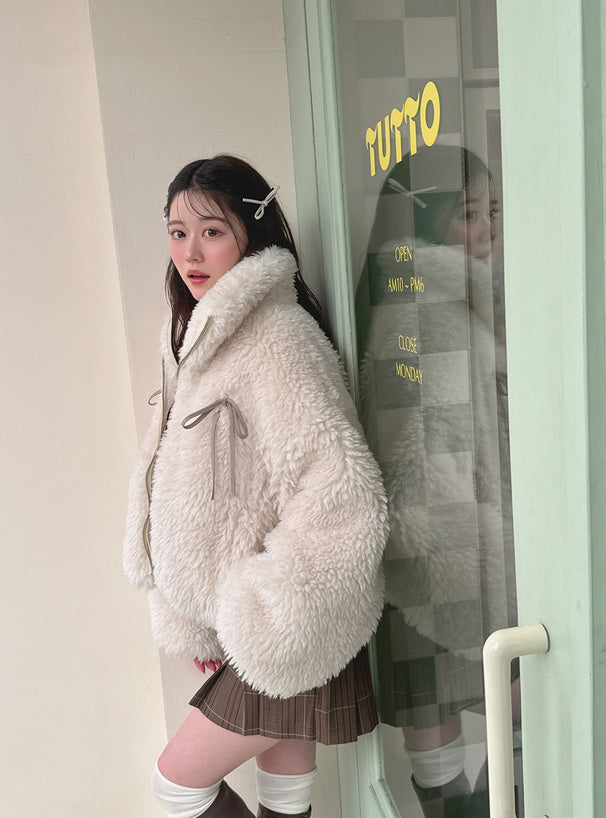 GRL 蝴蝶結毛毛外套 3色 [OT0214]