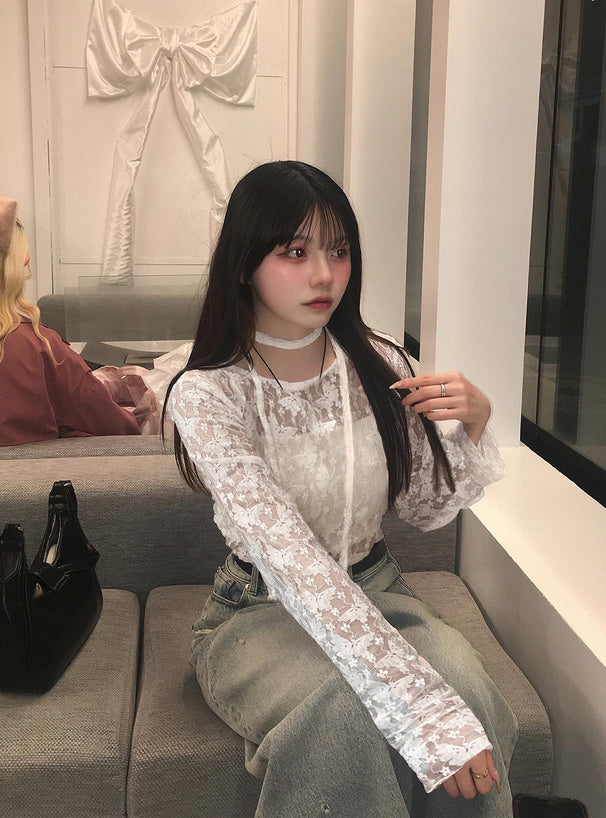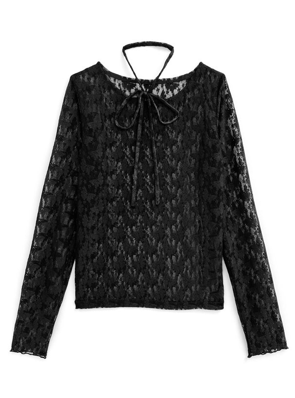GRL 頸帶蝴蝶蕾絲上衣 3色 [TP0230]