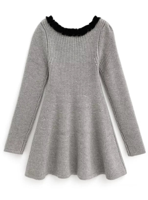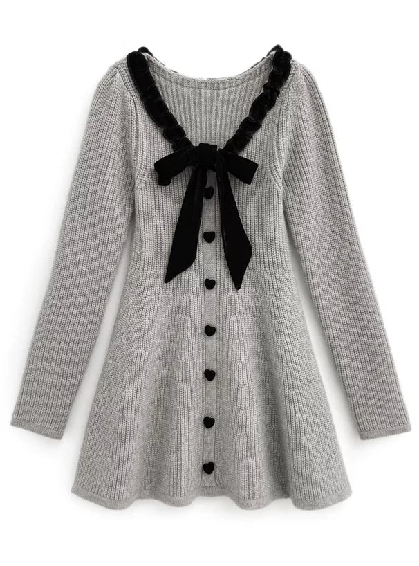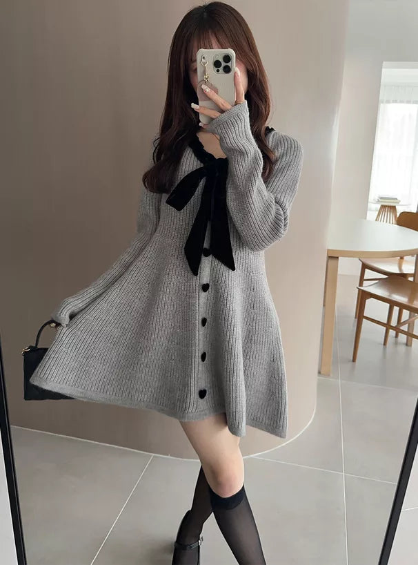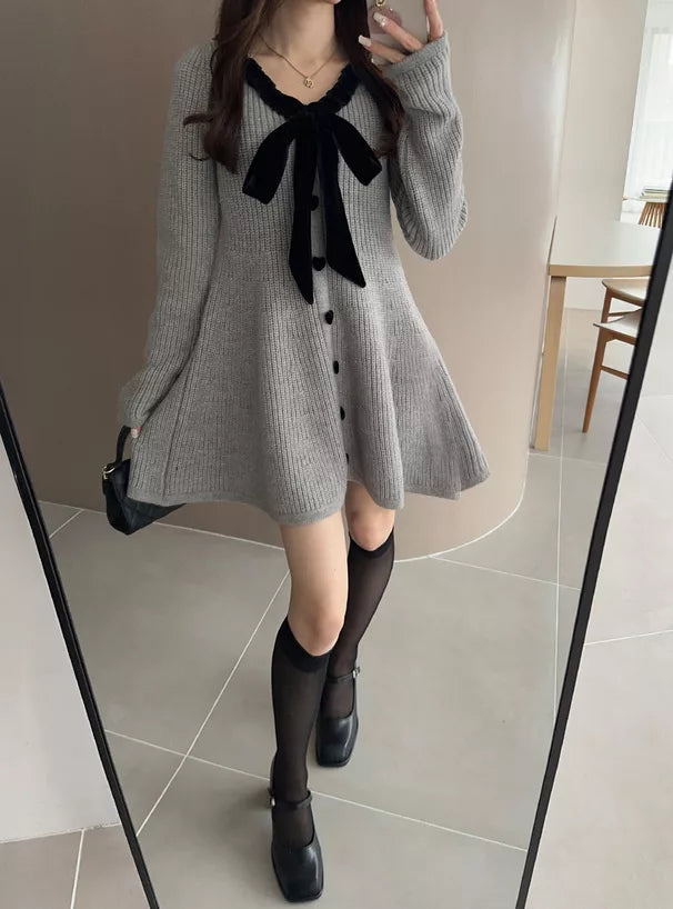 GRL 蝴蝶結緞帶針織喇叭連身裙 [OP0159]