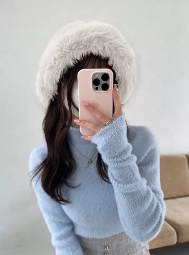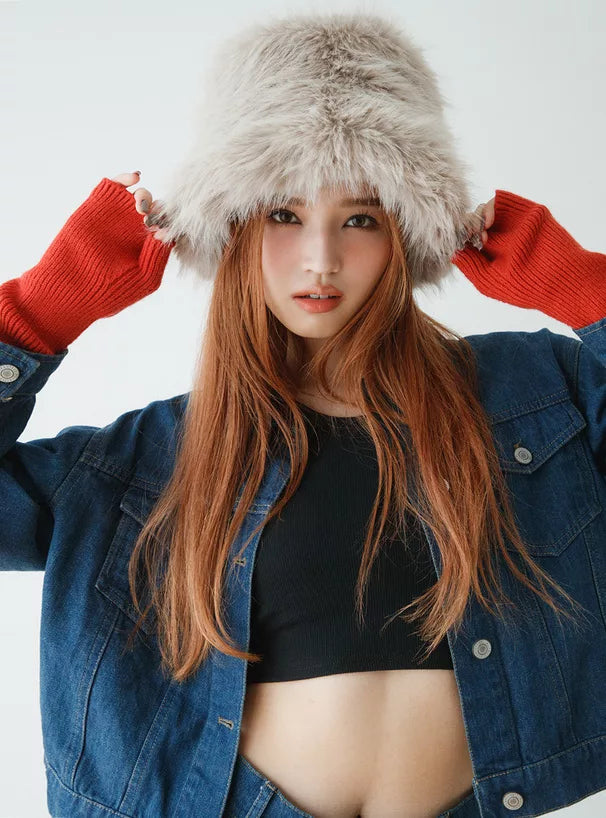 GRL 象牙白毛茸茸桶帽 [HT211]
