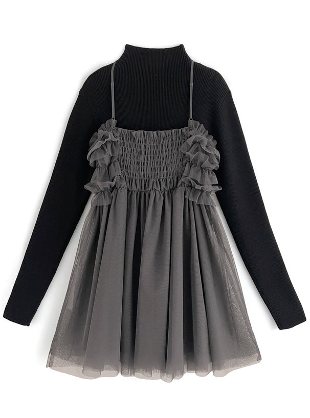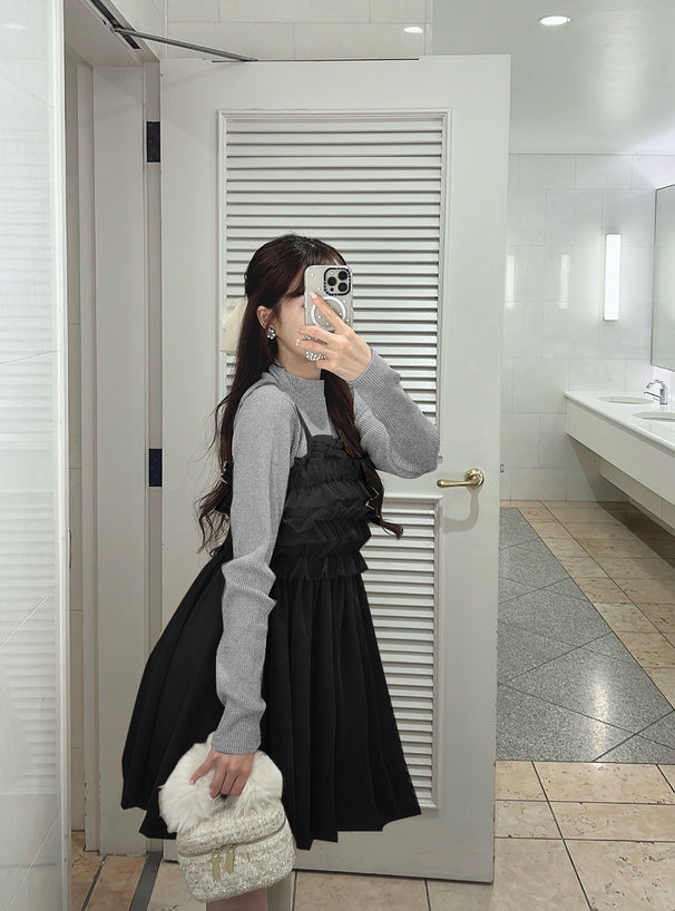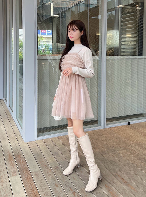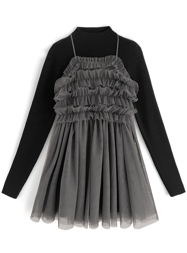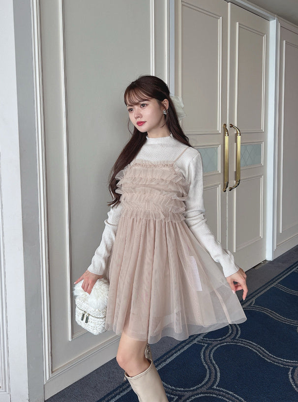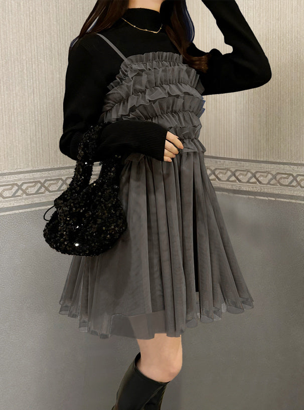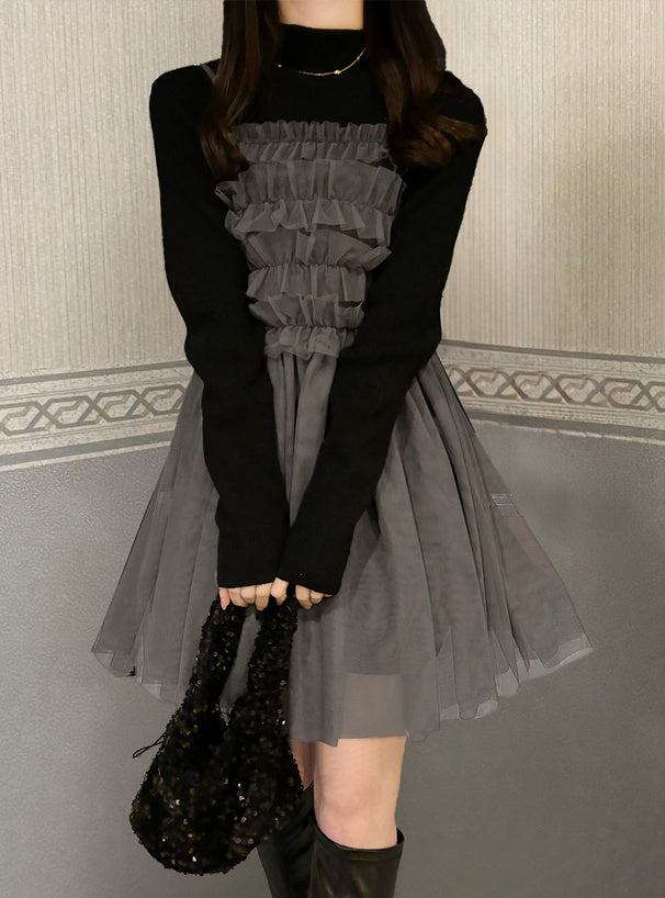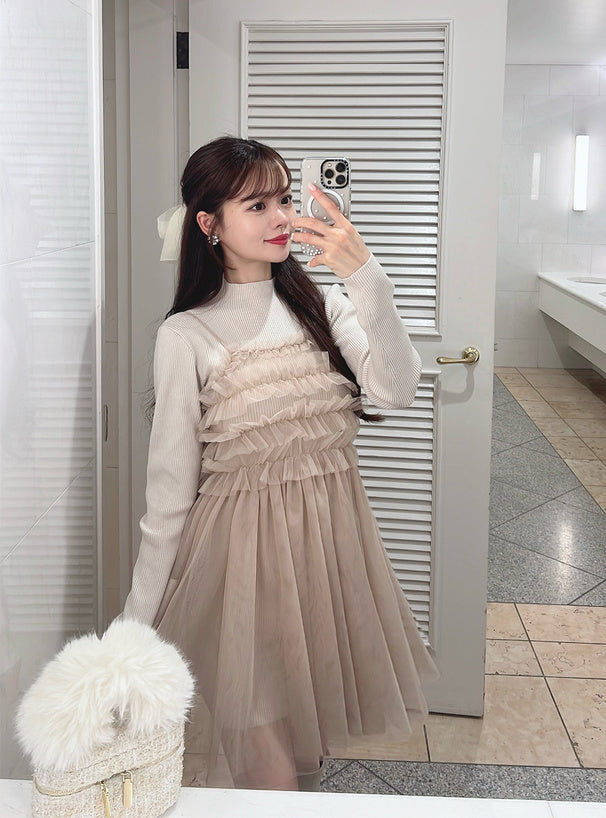 GRL Ruffle薄紗 x 針織連身裙套裝 3色 [OP0114]