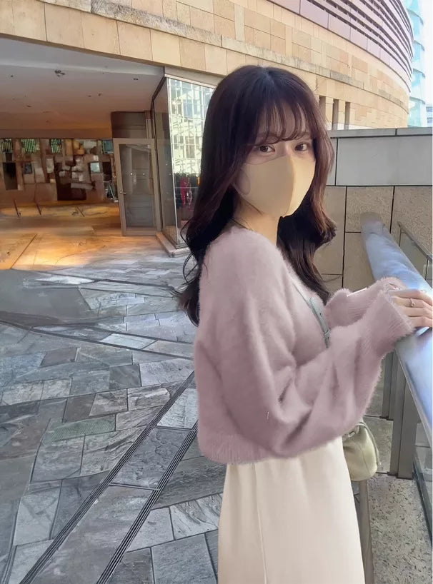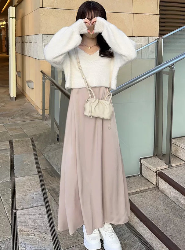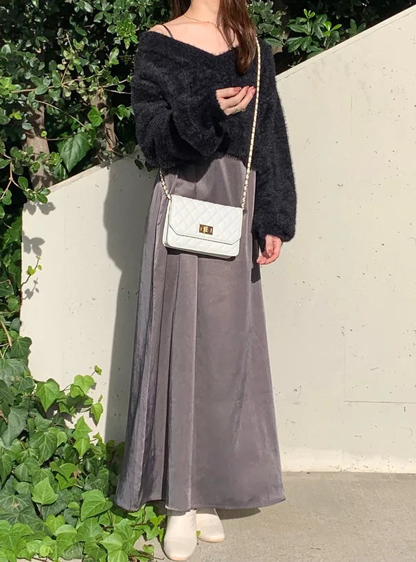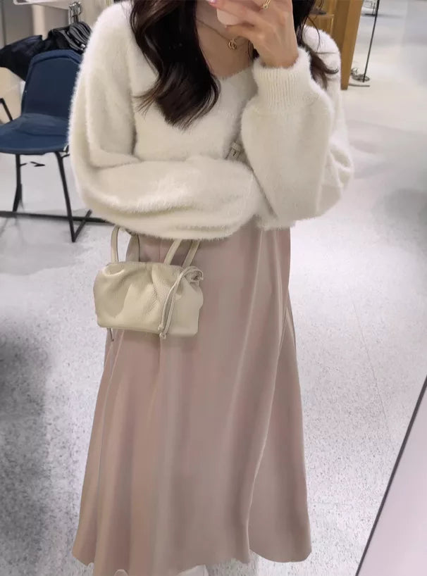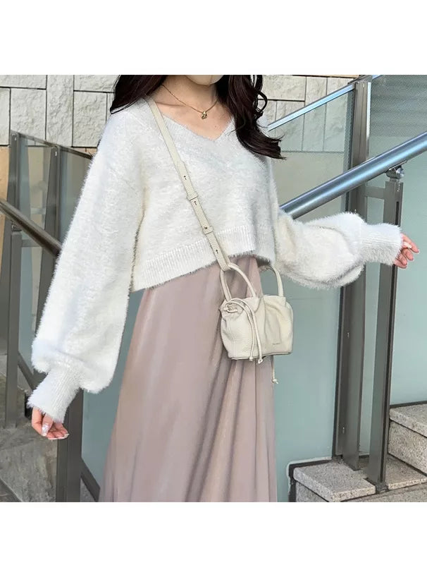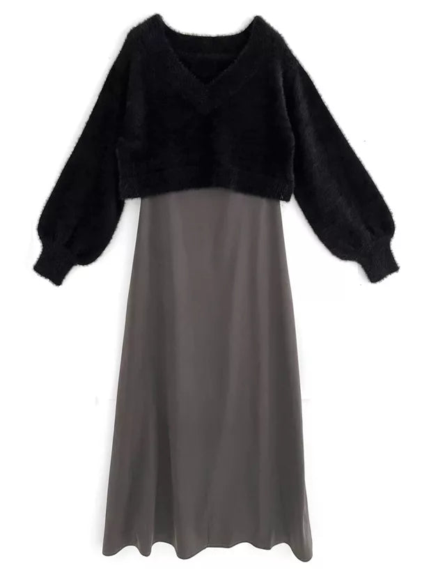 GRL 毛茸茸針織上衣 x 吊帶連身裙套裝 3色 [OP0133]