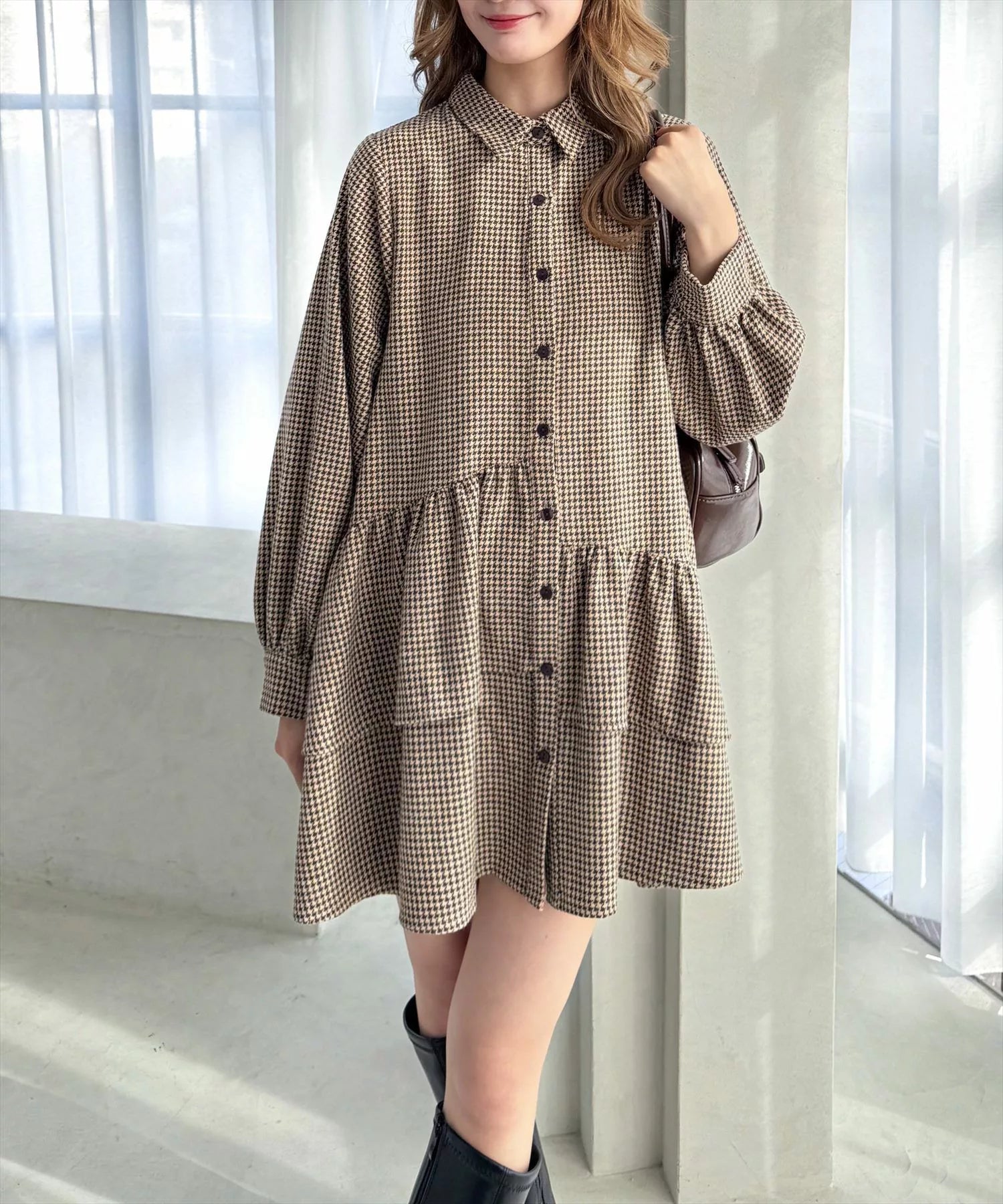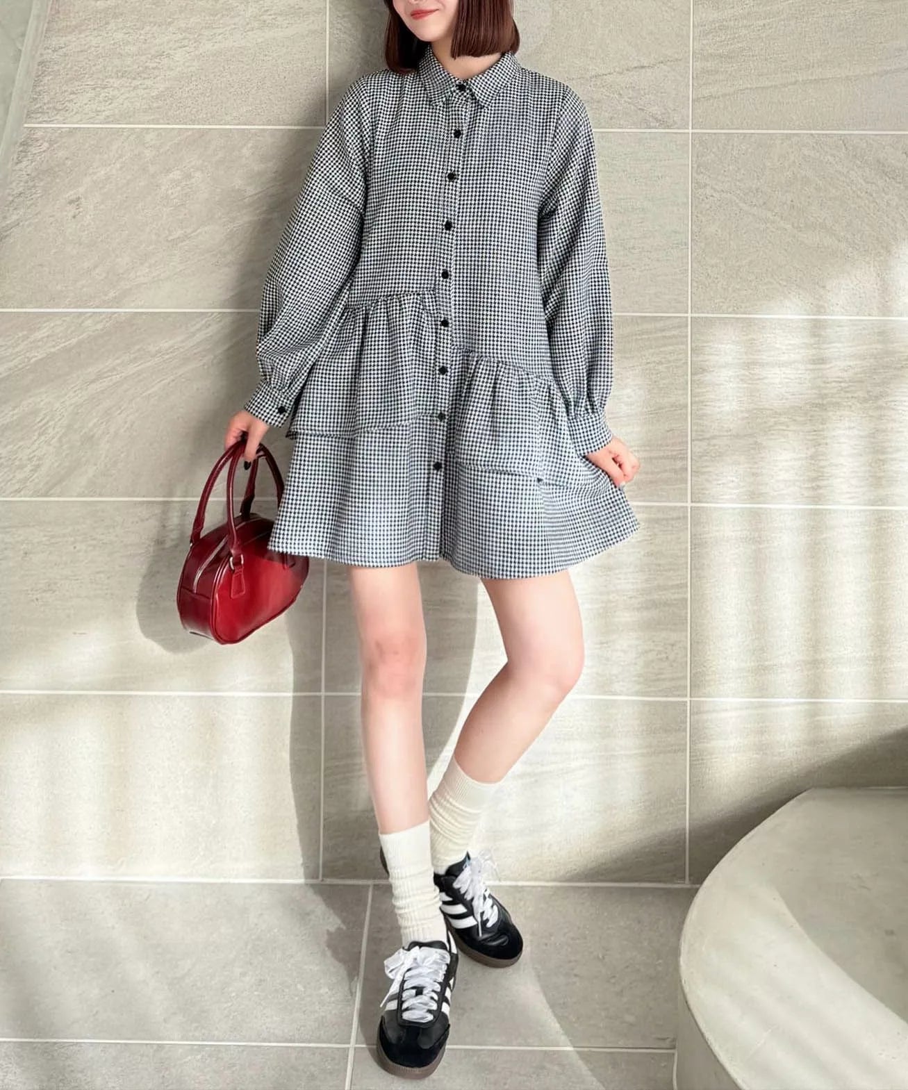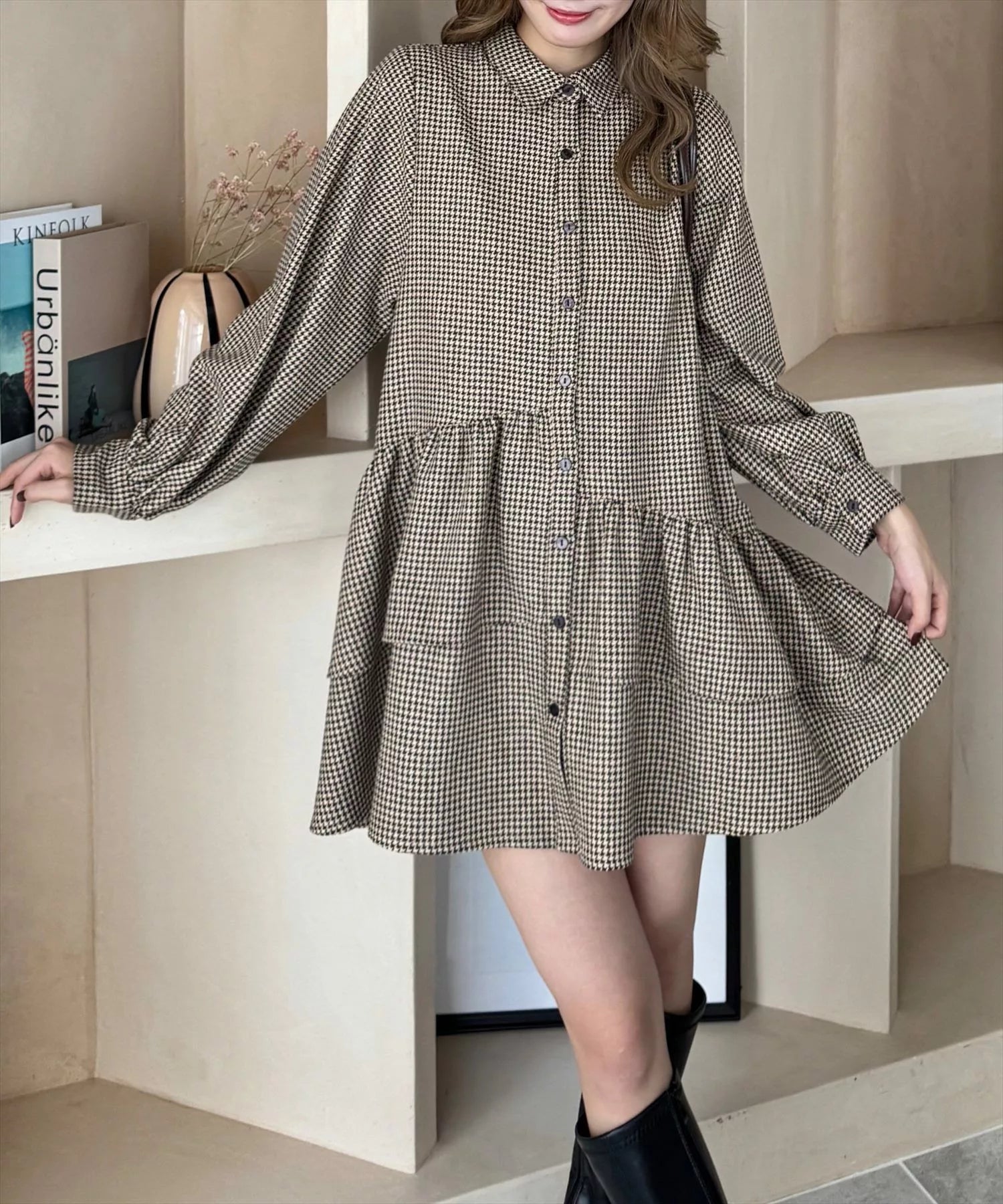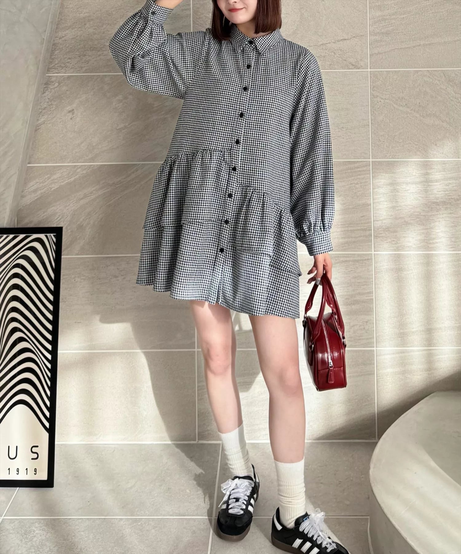 Clear 千鳥格Ruffle 連身裙 2色 [OP0167]