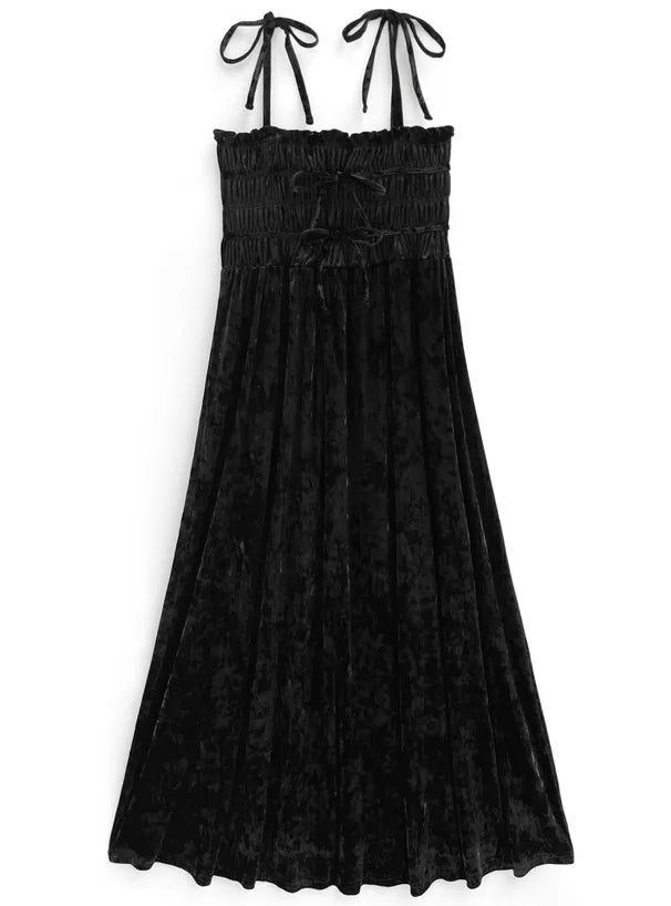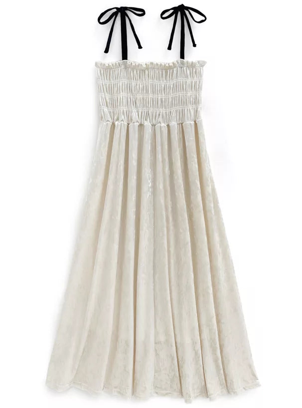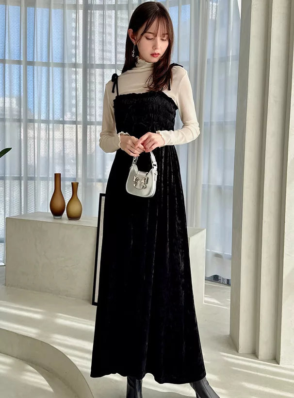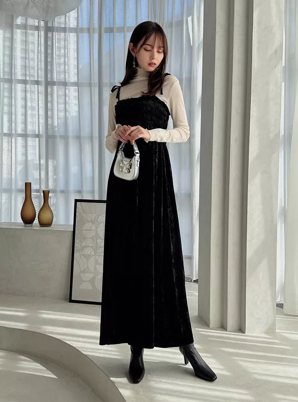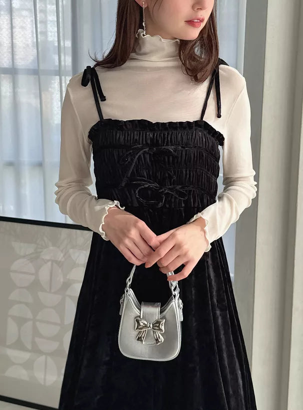 GRL 暗花絲絨蝴蝶結吊帶連身裙 2色 [OP0177]