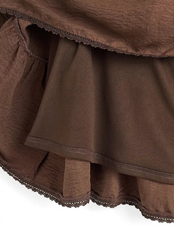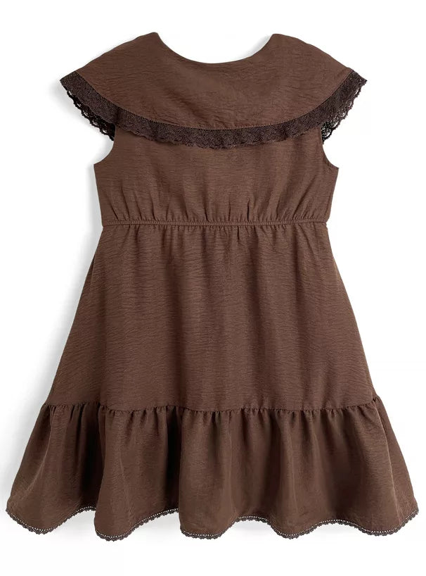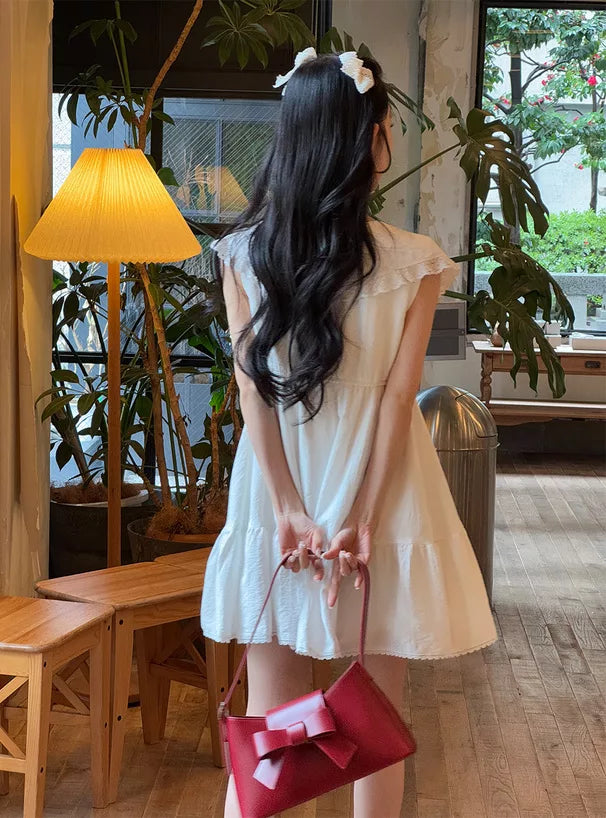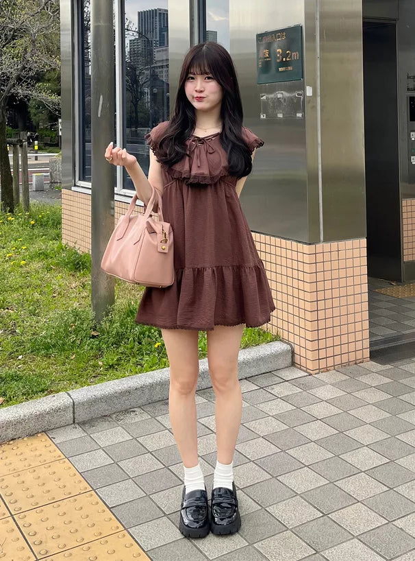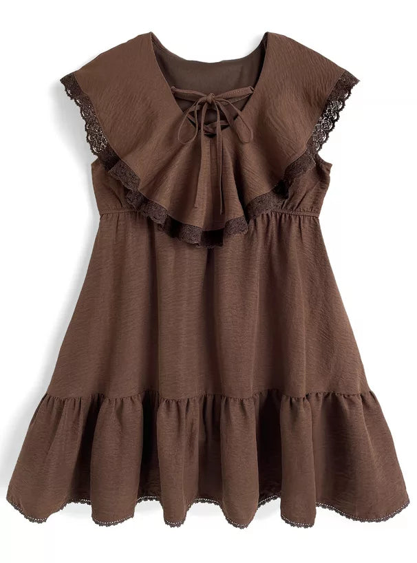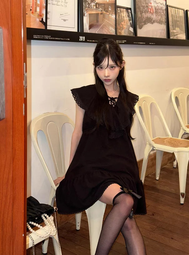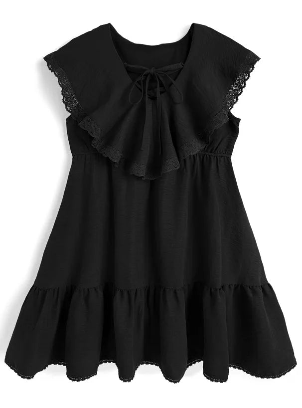 GRL 蝴蝶結綁帶荷葉邊領蕾絲連身裙 3色 [OP0207]