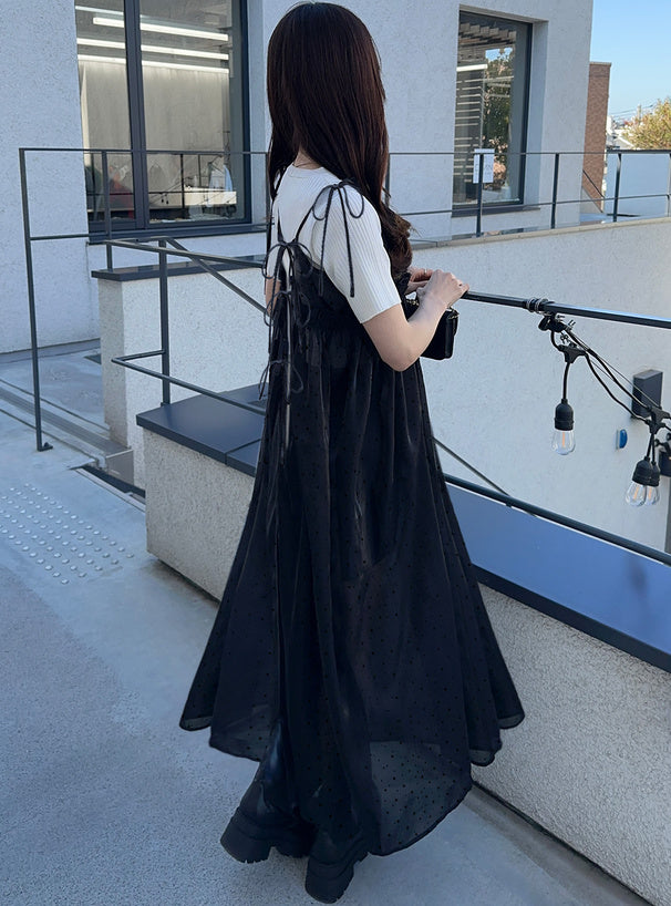 GRL 波點透明感吊帶連身裙 [OP082]