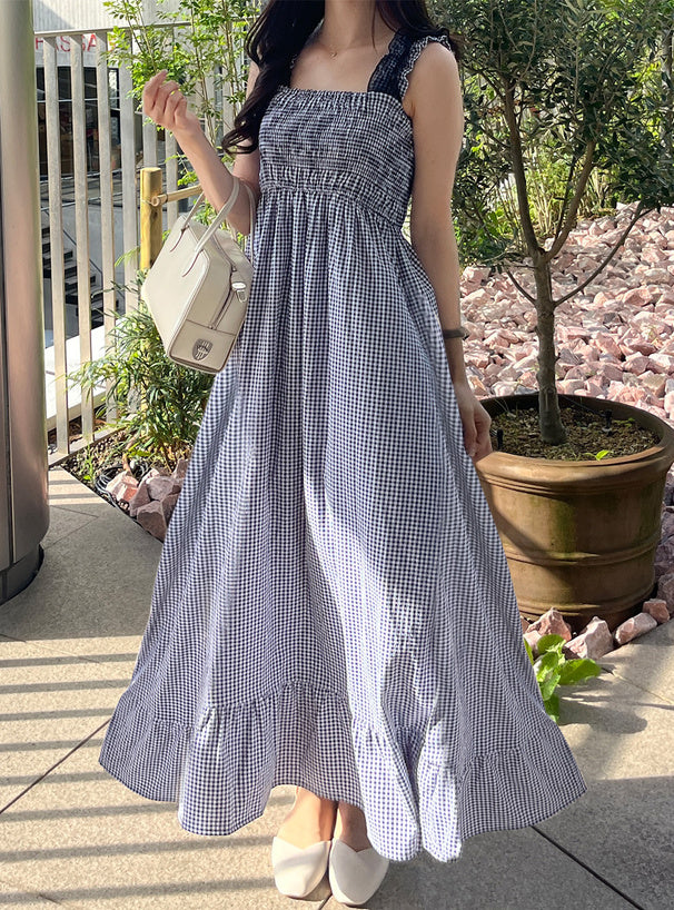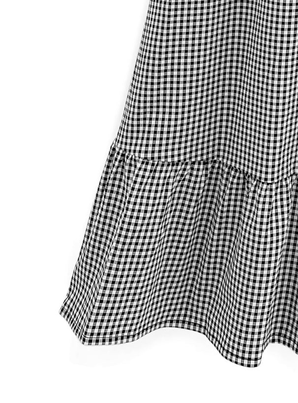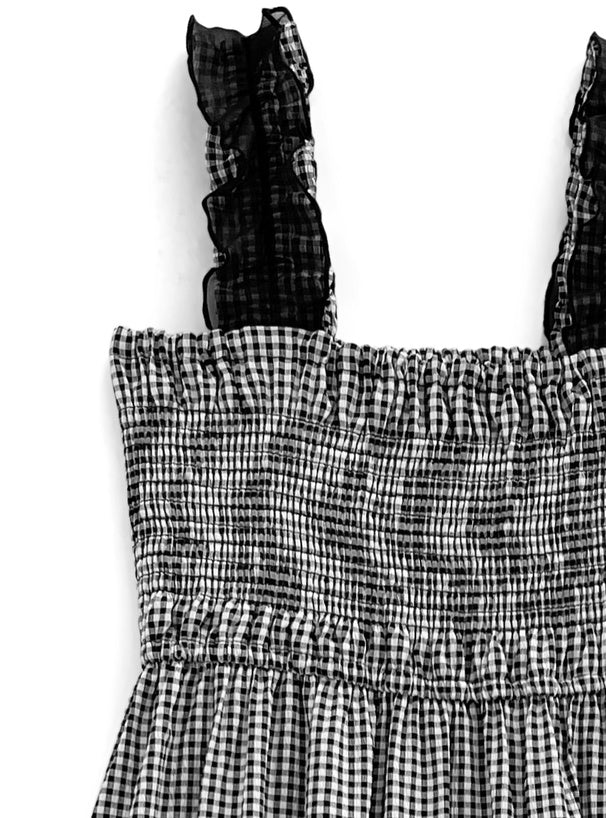 GRL Ruffle 肩帶黑白格仔連身裙 [OP086]