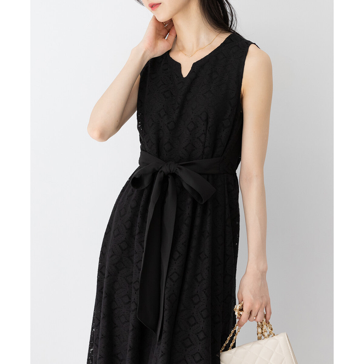 菱格蕾絲蝴蝶結連身裙 [OP111]