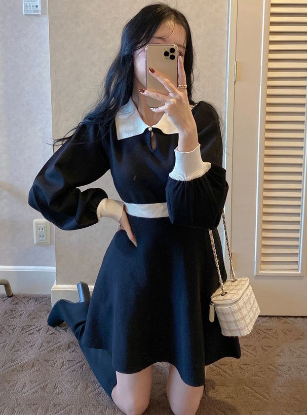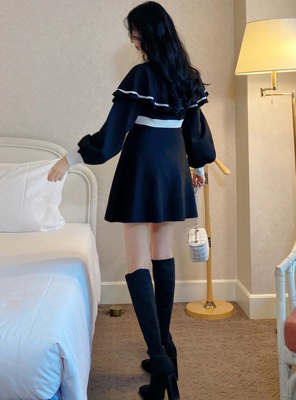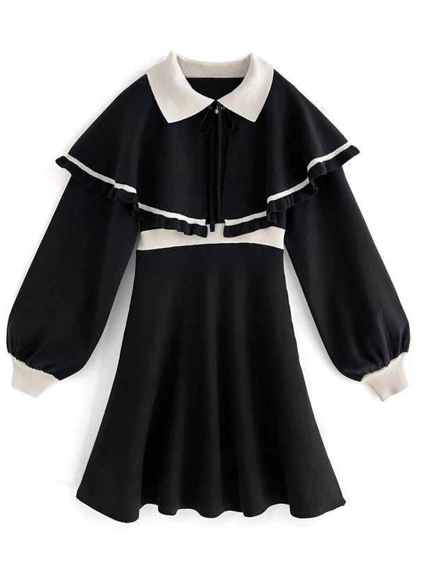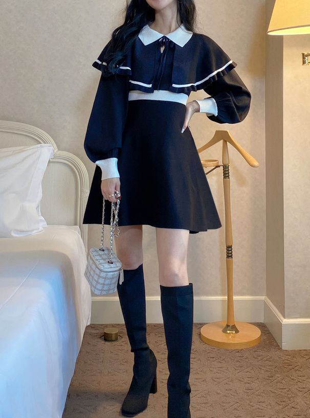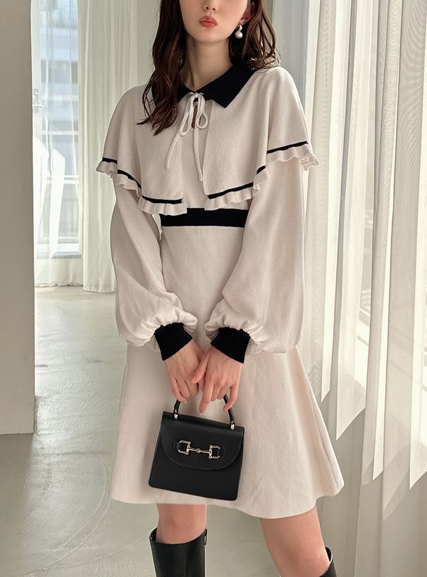 GRL 斗篷拼色針織連身裙 [OP126]