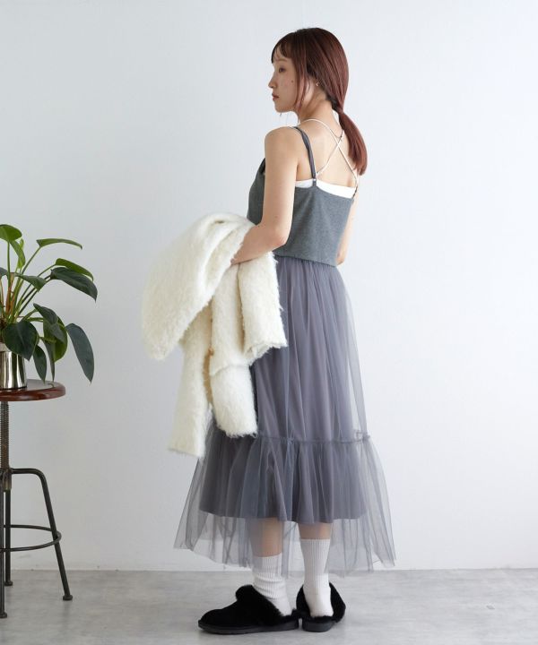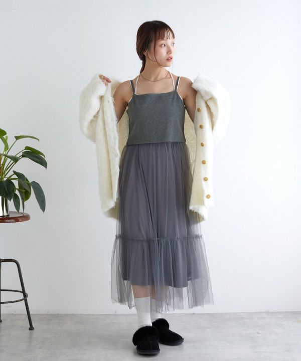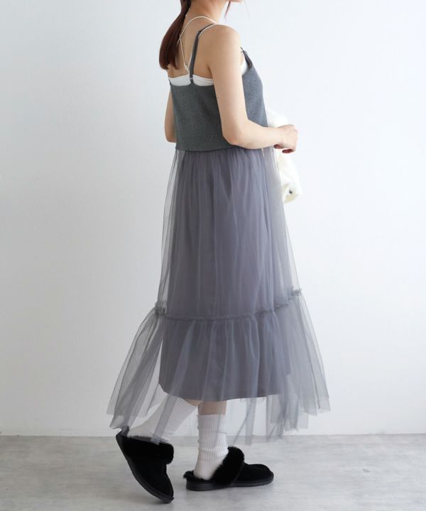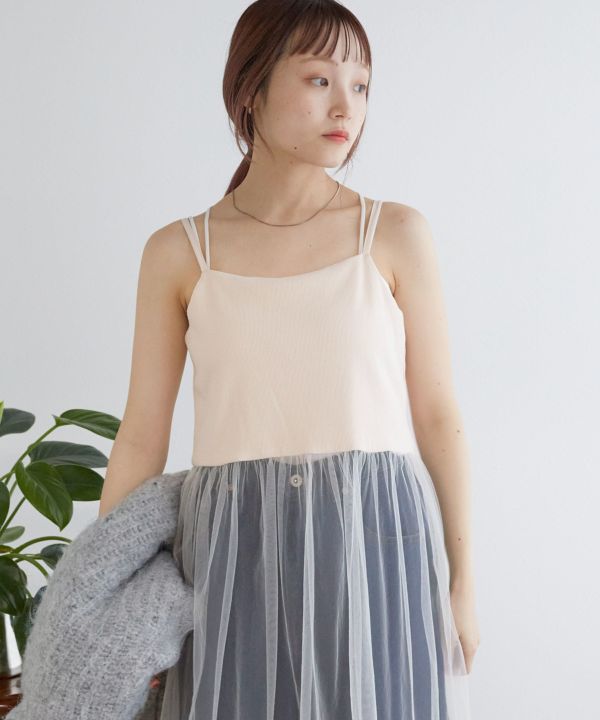 w closet 薄紗吊帶連身裙連內搭半裙 [OP233]