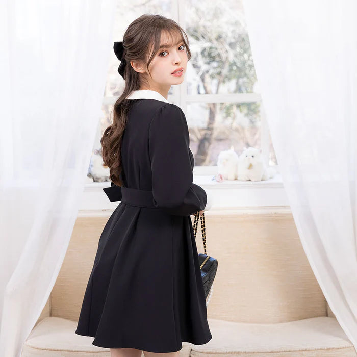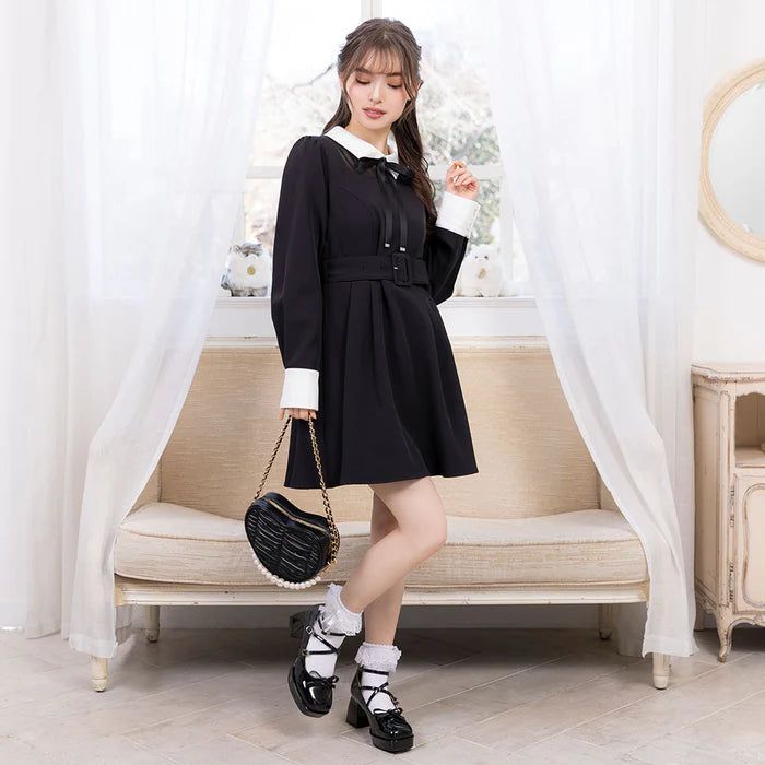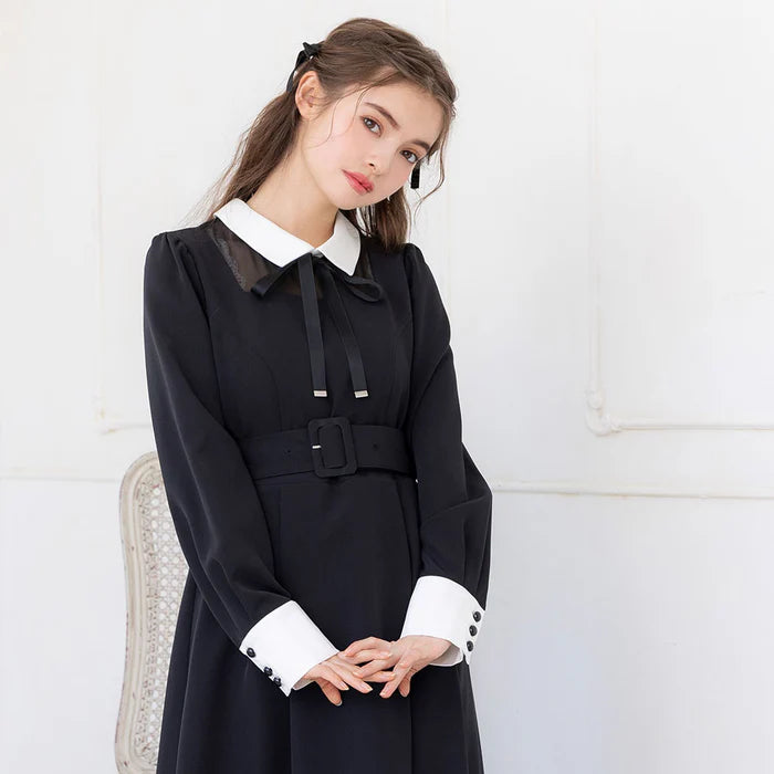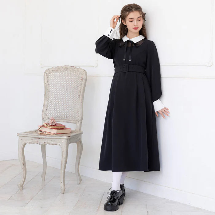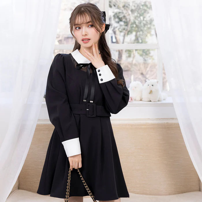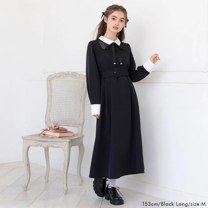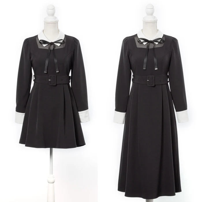 DearMyLoveRose 附腰帶蝴蝶結透明低領連身裙 短版/長版 [OP299]