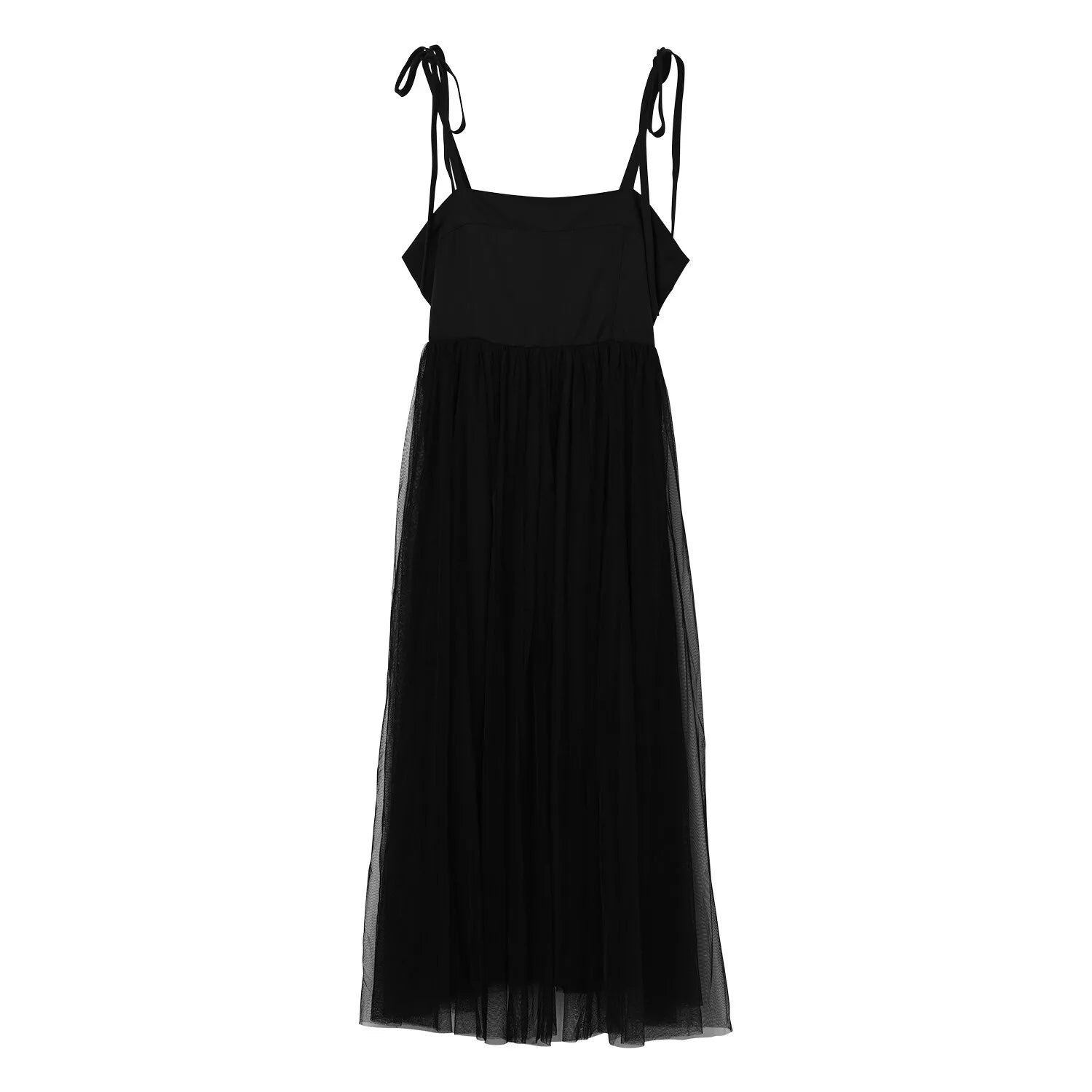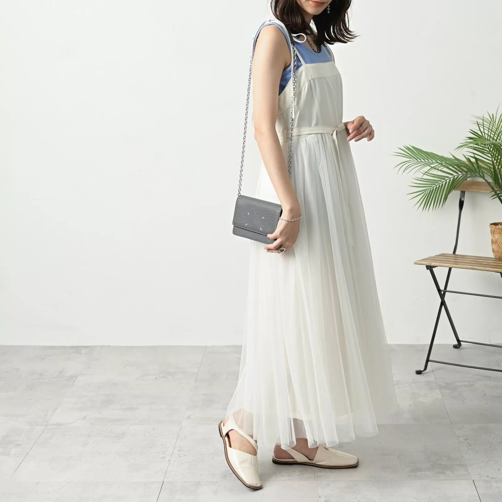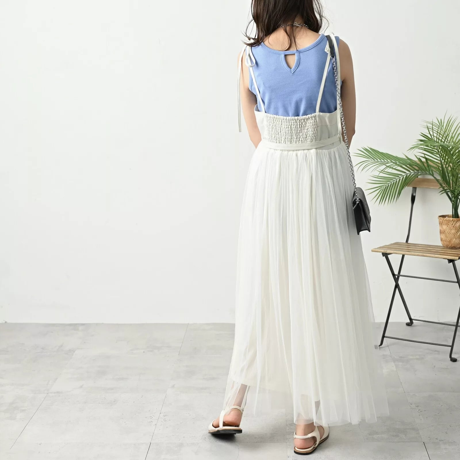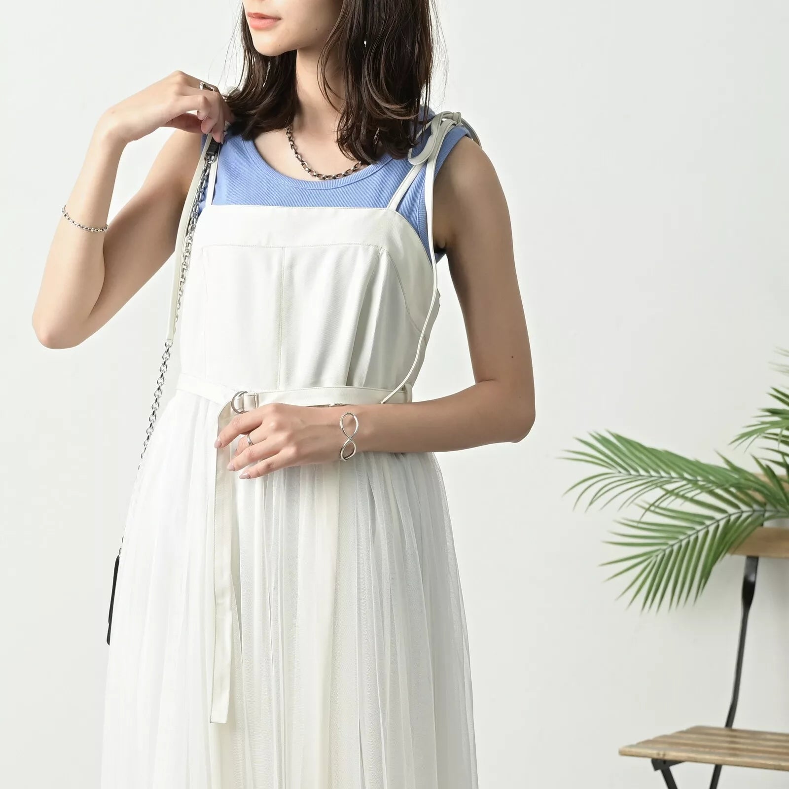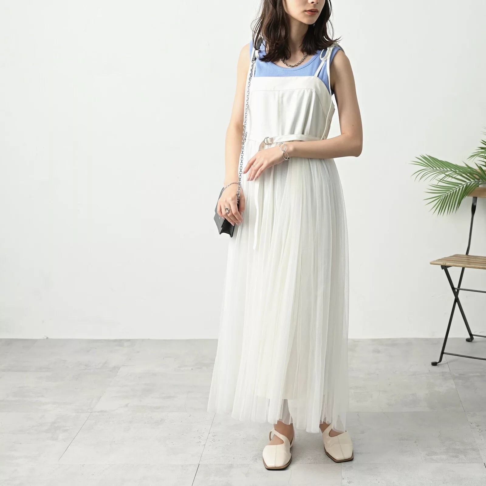 附腰帶薄紗下擺綁帶吊帶連身裙 2色 [OP329]