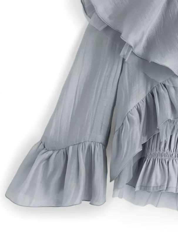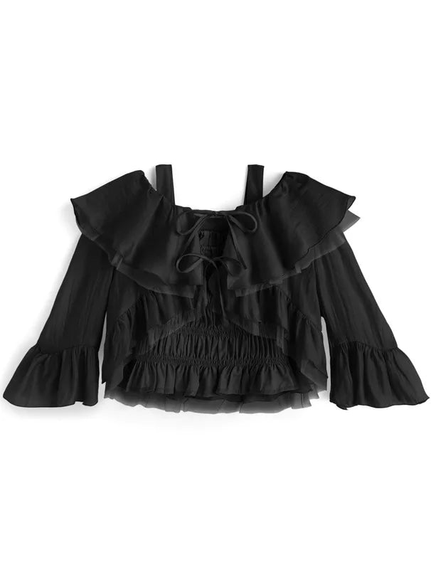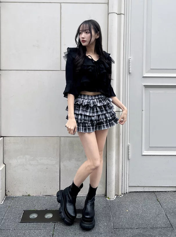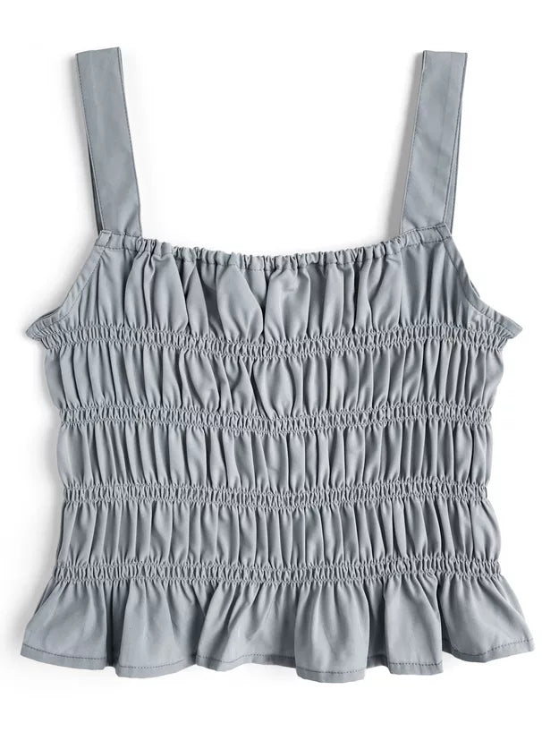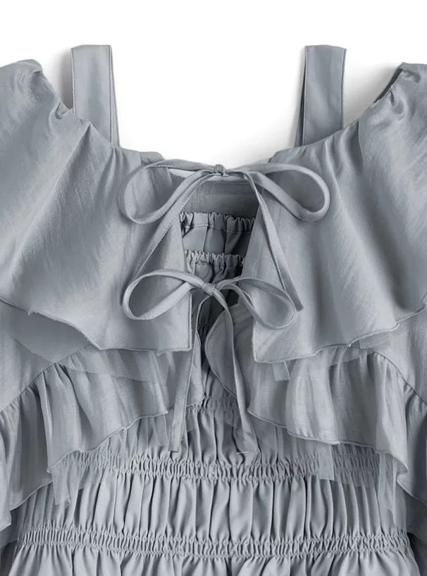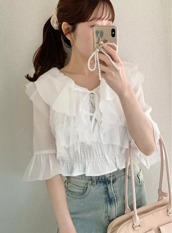GRL 荷葉邊蝴蝶結短上衣 x 吊帶背心雪紡套裝 3色 [TP0202]