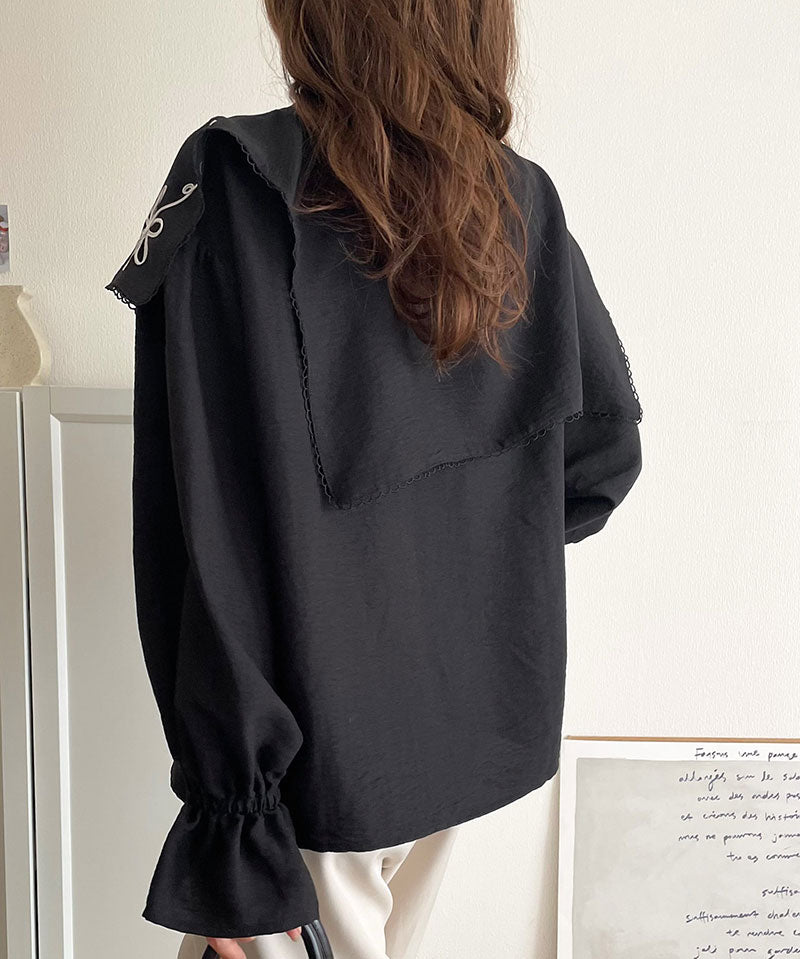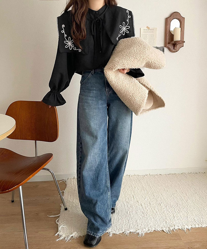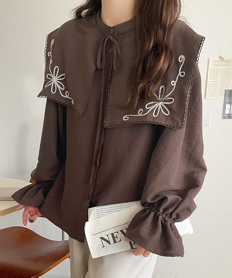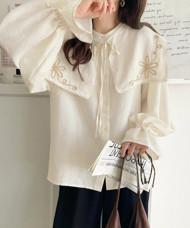 mily bilet 花卉刺繡領子襯衫 3色 [TP0232]