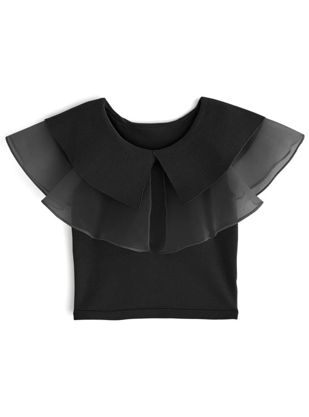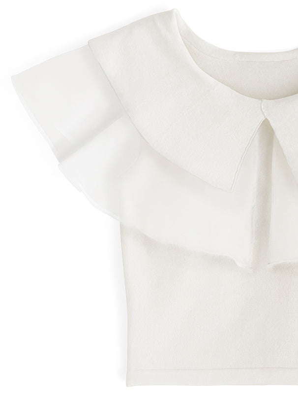 這是一款極具吸引力的上衣,採用針織和透明紗材質混合製成,設計獨一無二。