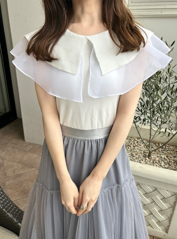 GRL 薄紗大領無袖針織上衣 3色 [TP070]