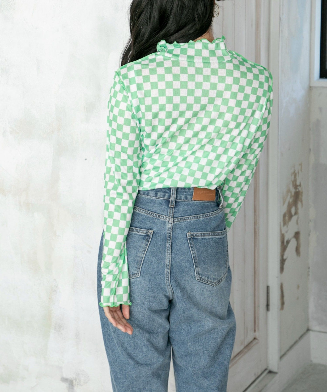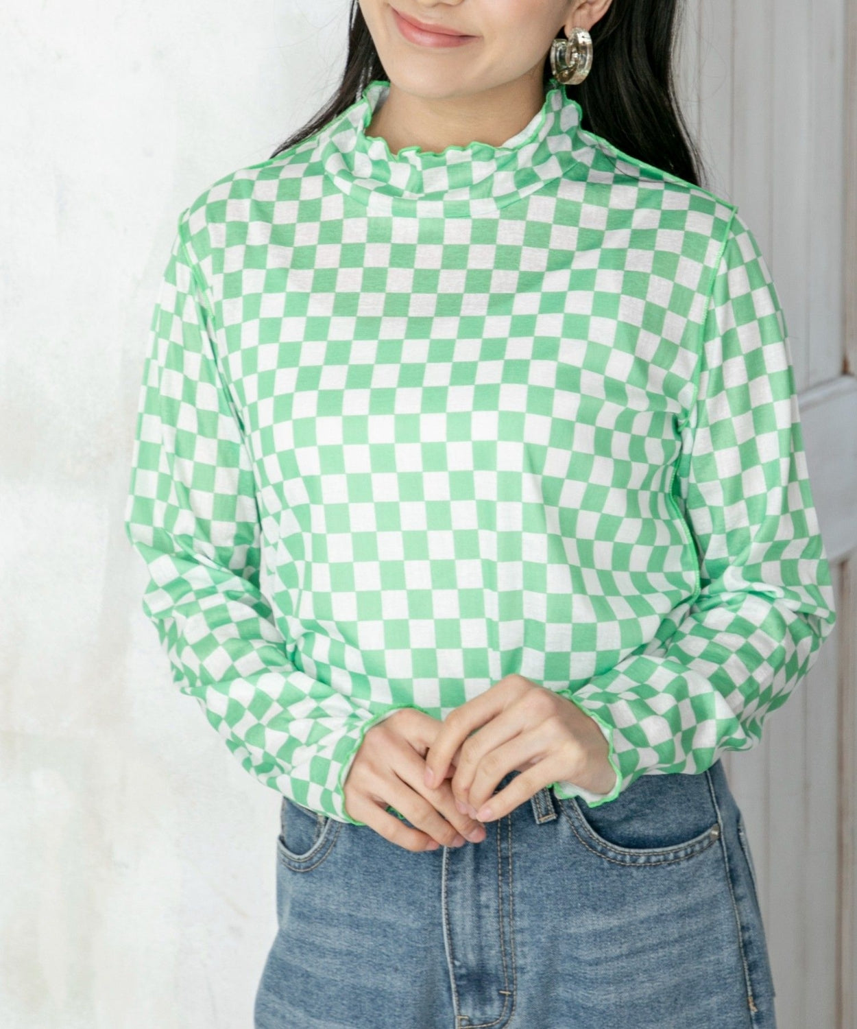 ems excite 波浪領口綠色格仔上衣 [TP201]