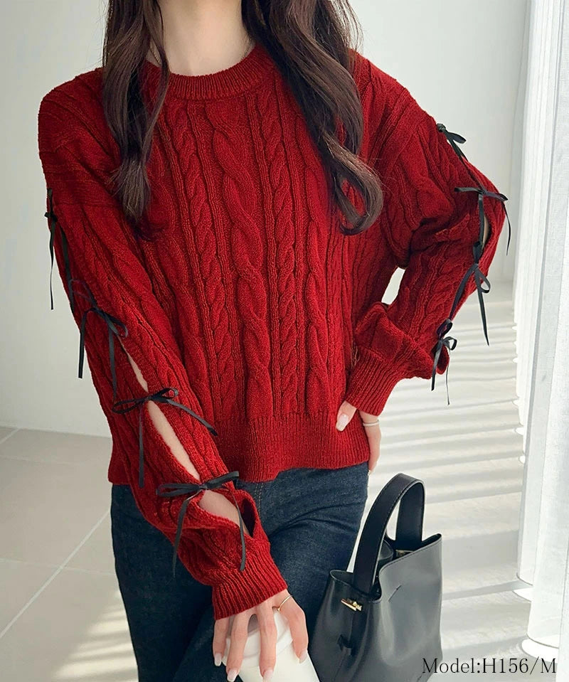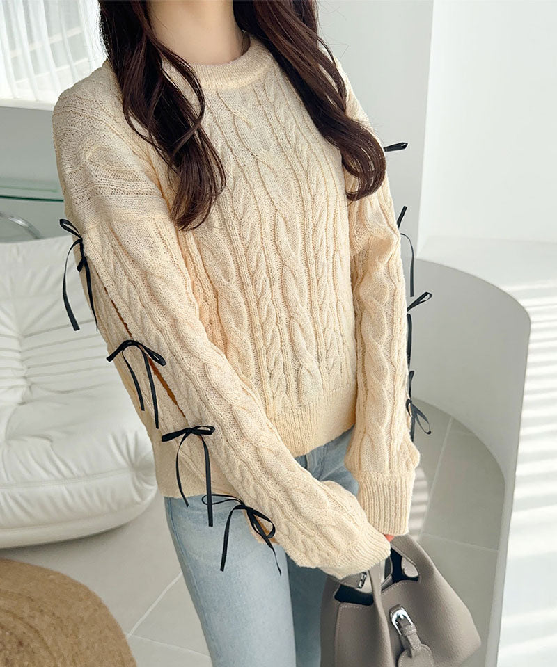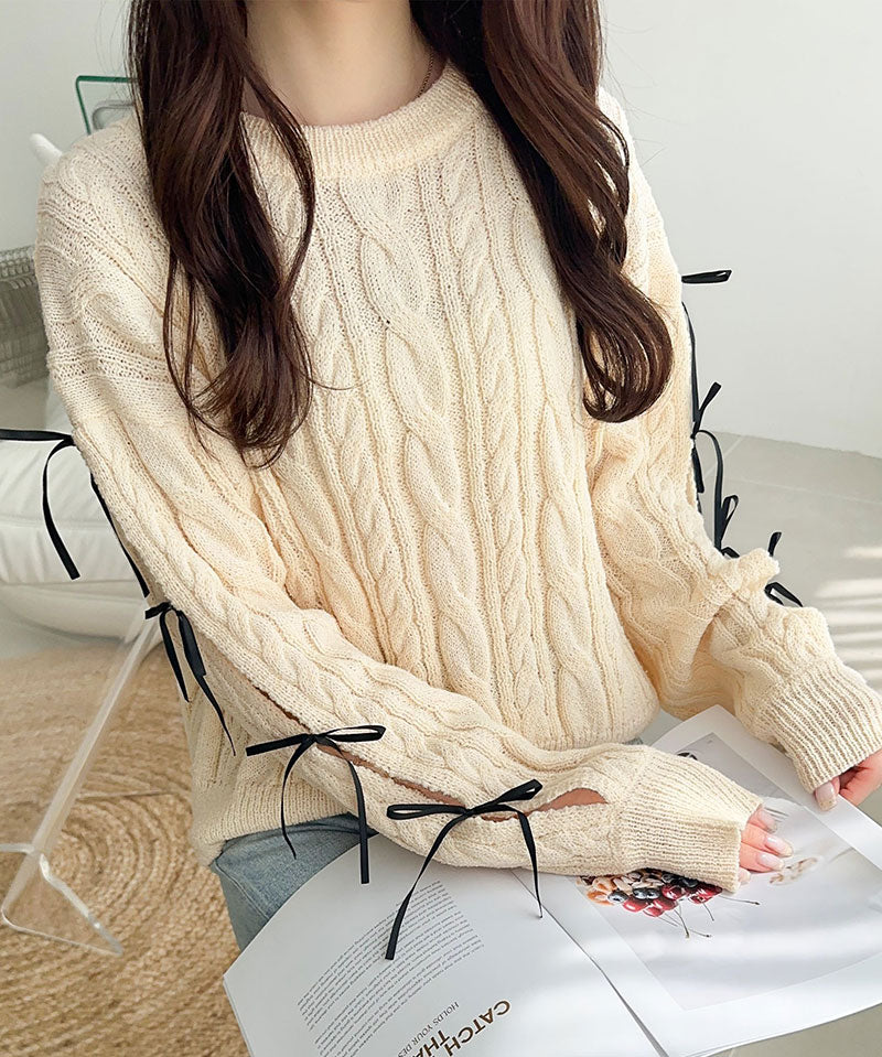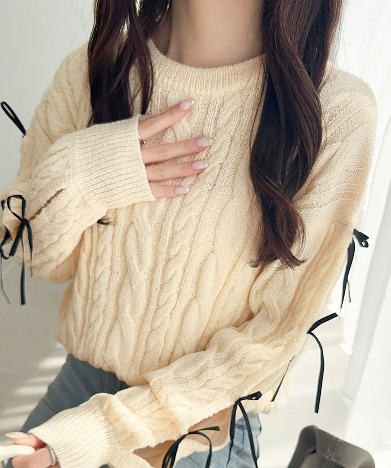 mily bilet 蝴蝶結麻花針織上衣 4色 [TP234]