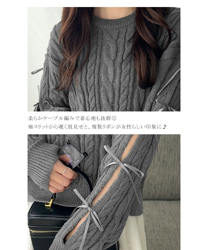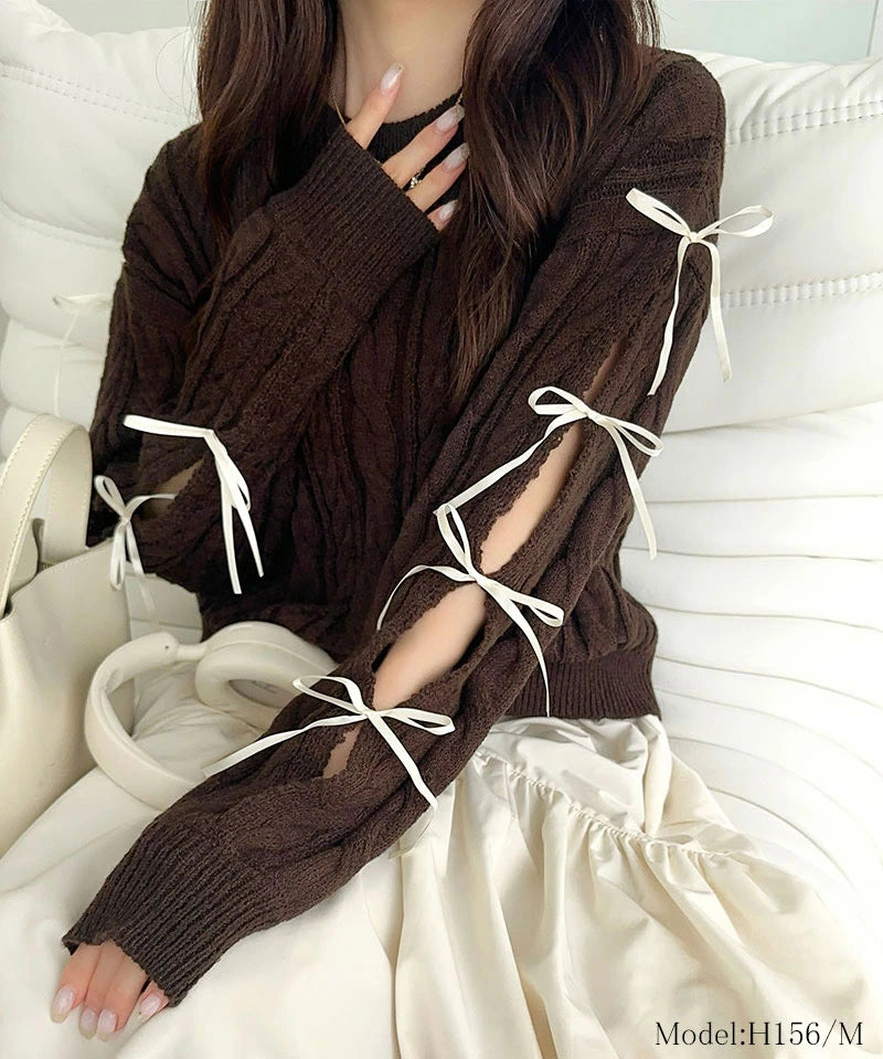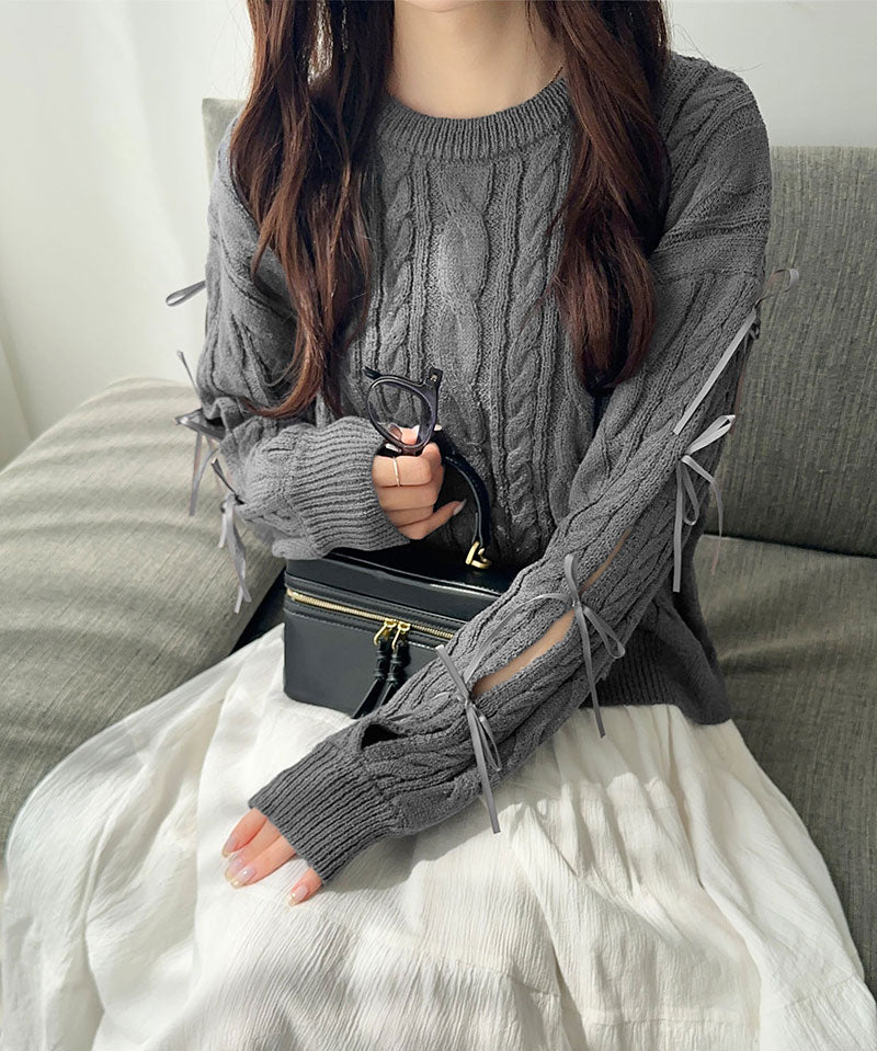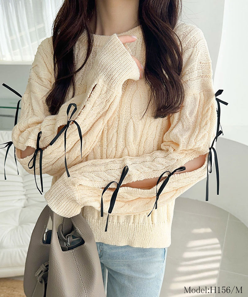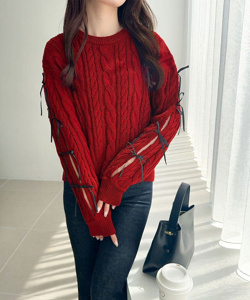 mily bilet 蝴蝶結麻花針織上衣 4色 [TP234]