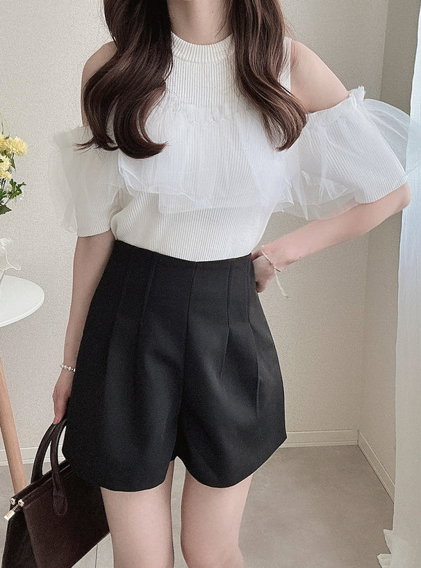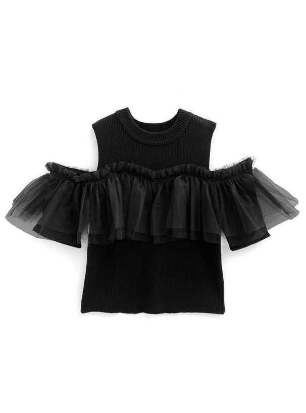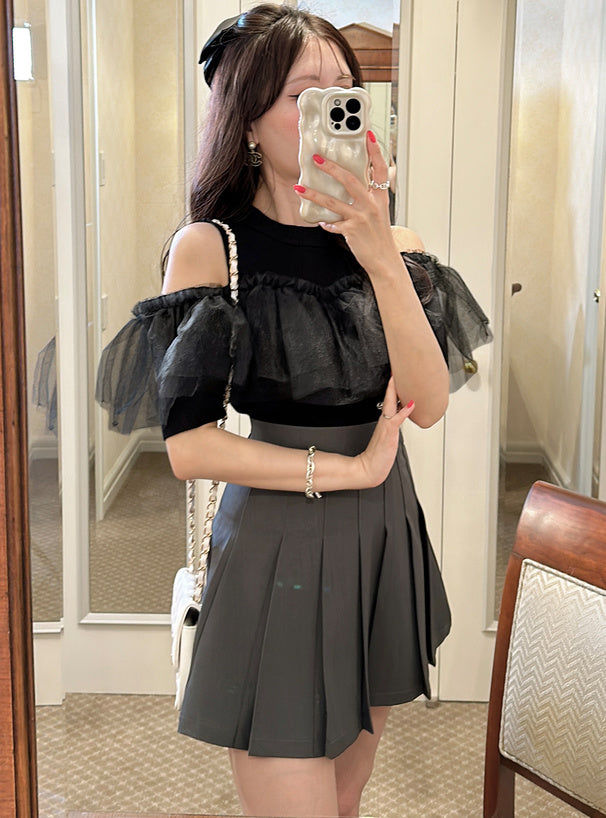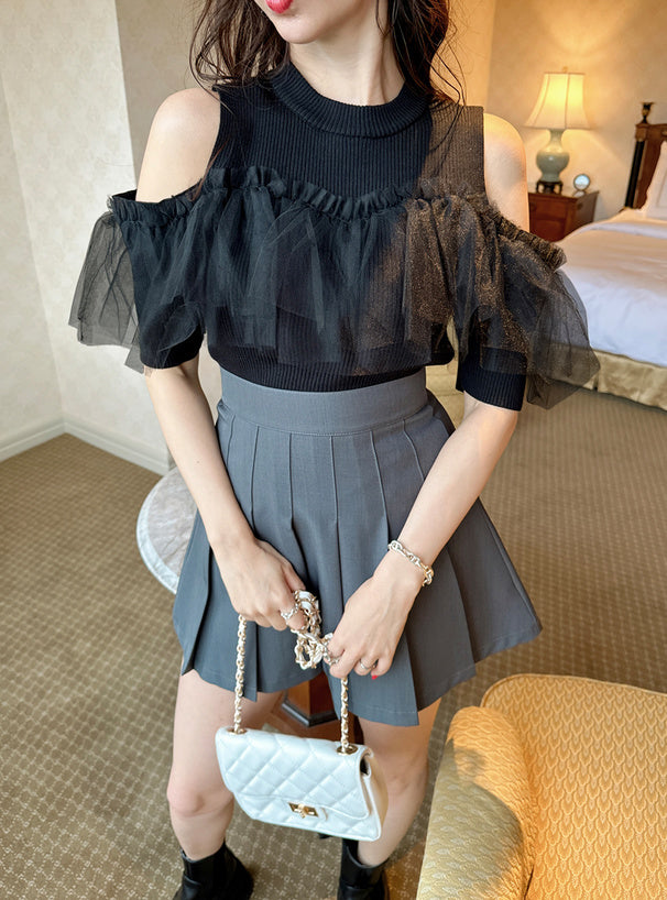 GRL 薄紗荷葉邊露肩針織上衣 2色 [TP291]