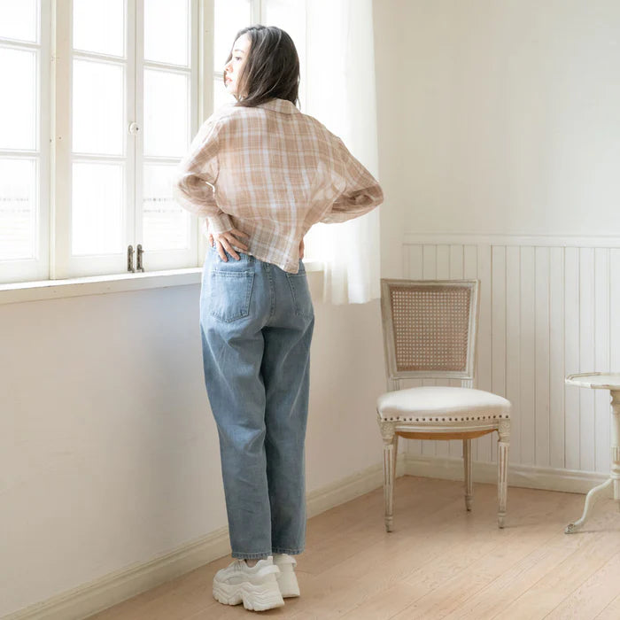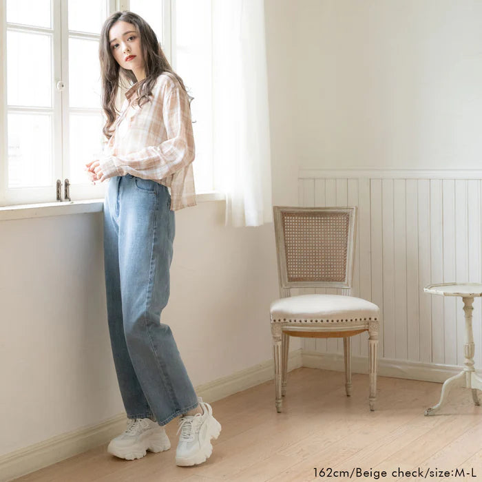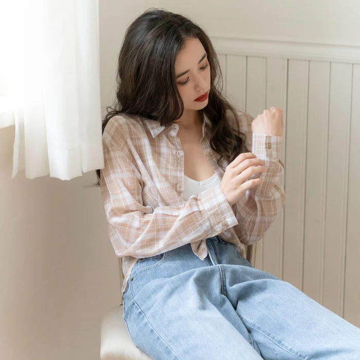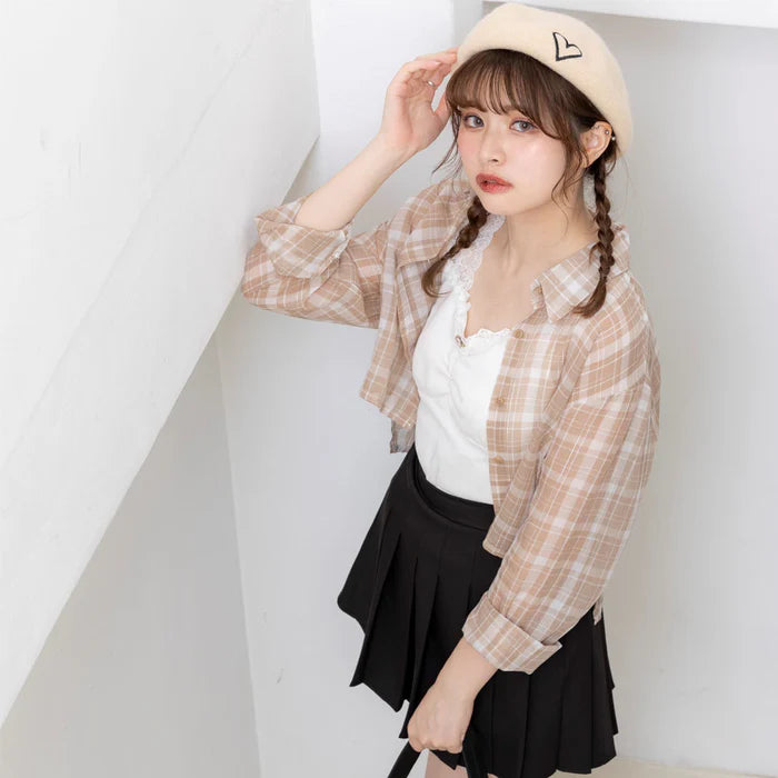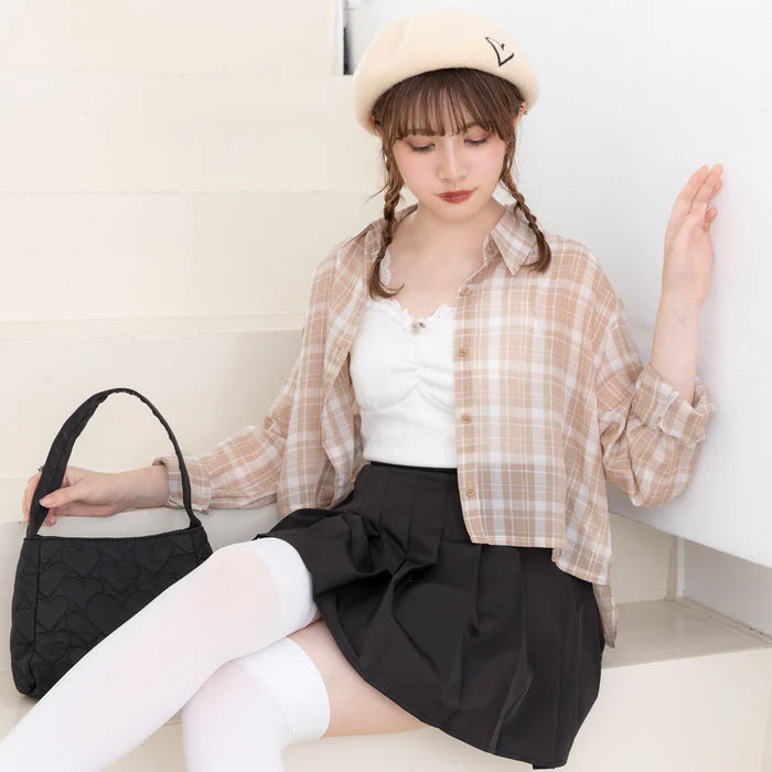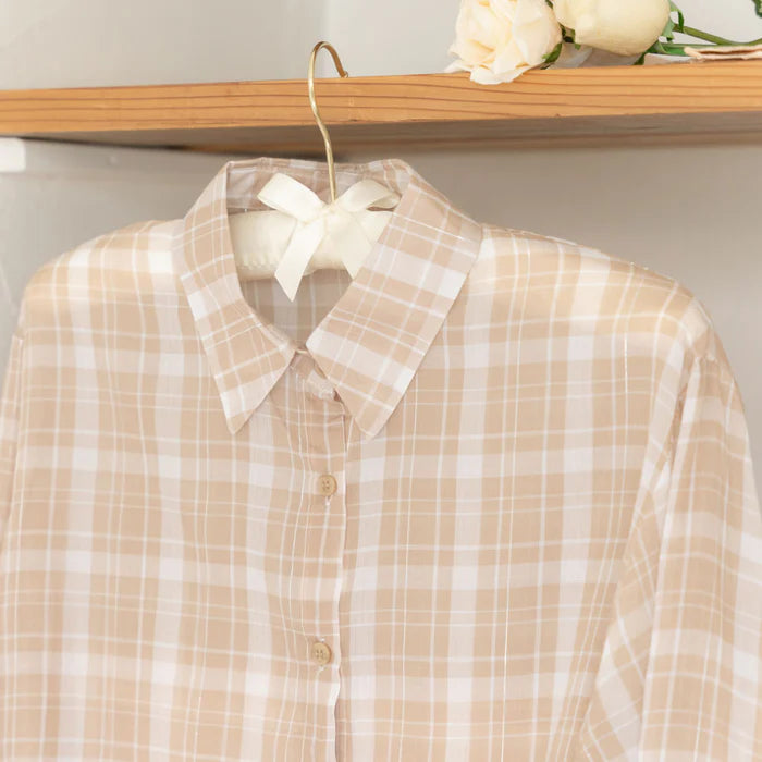 DearMyLoveRose 透明感格紋短襯衫 [TP320]
