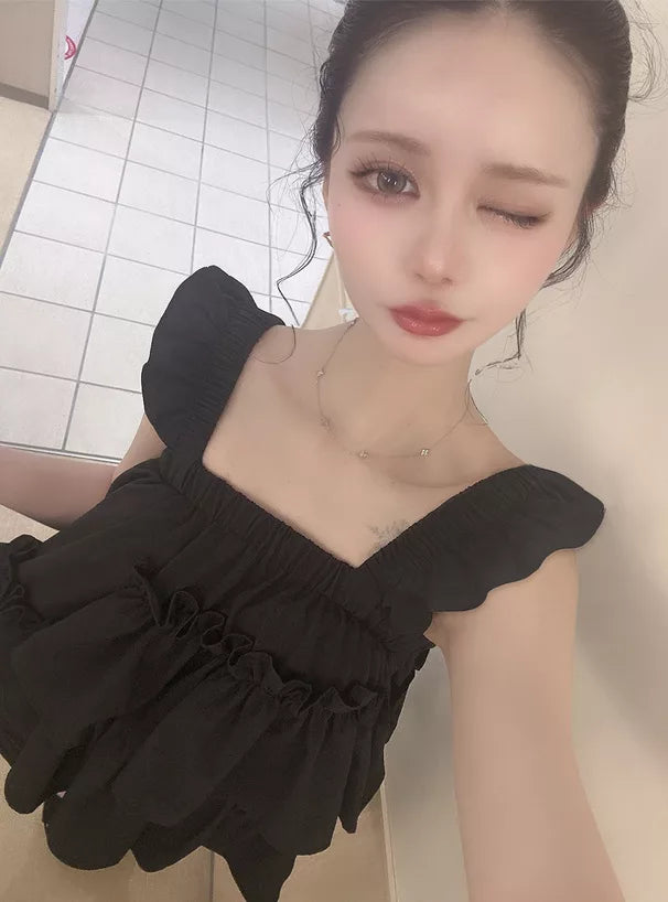 GRL Ruffle 吊帶上衣 3色 [TP358]
